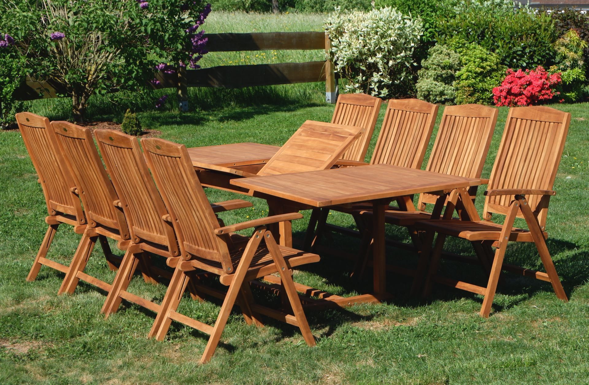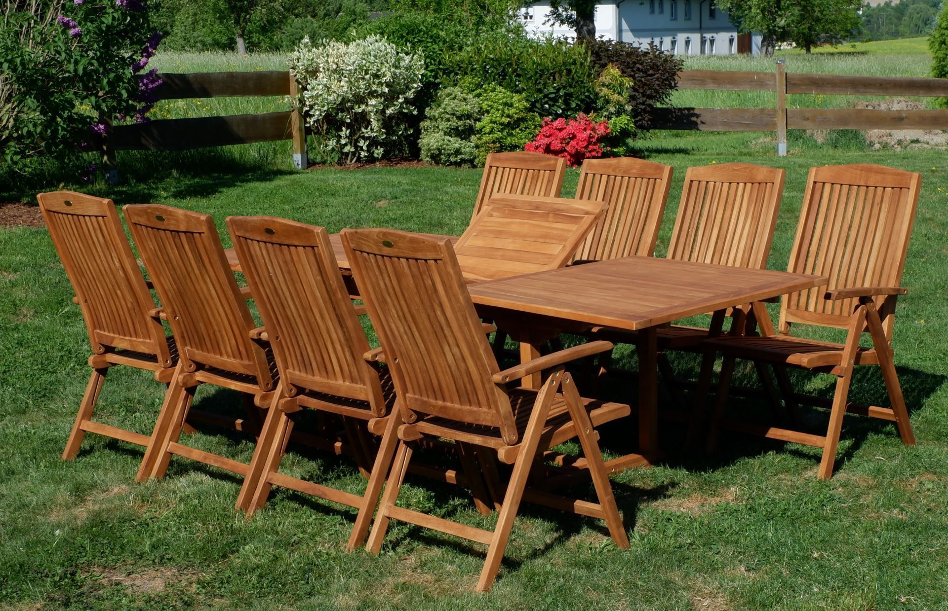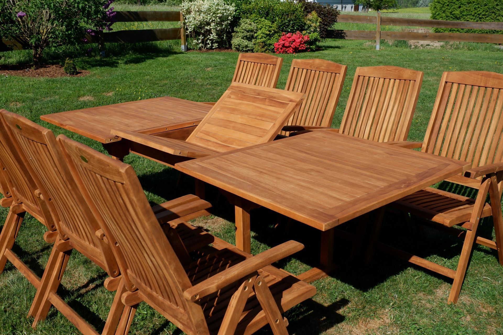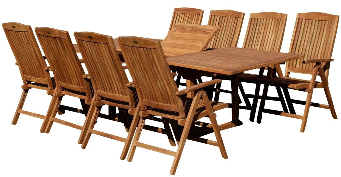 ASS TEAK SET: Gartengarnitur Gartenset Ausziehtisch 240cm + 8 Hochlehner TOBAGO Holz