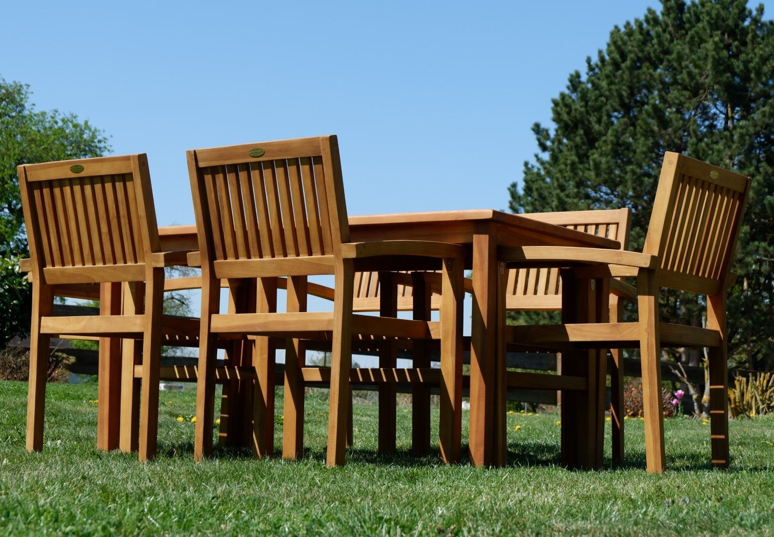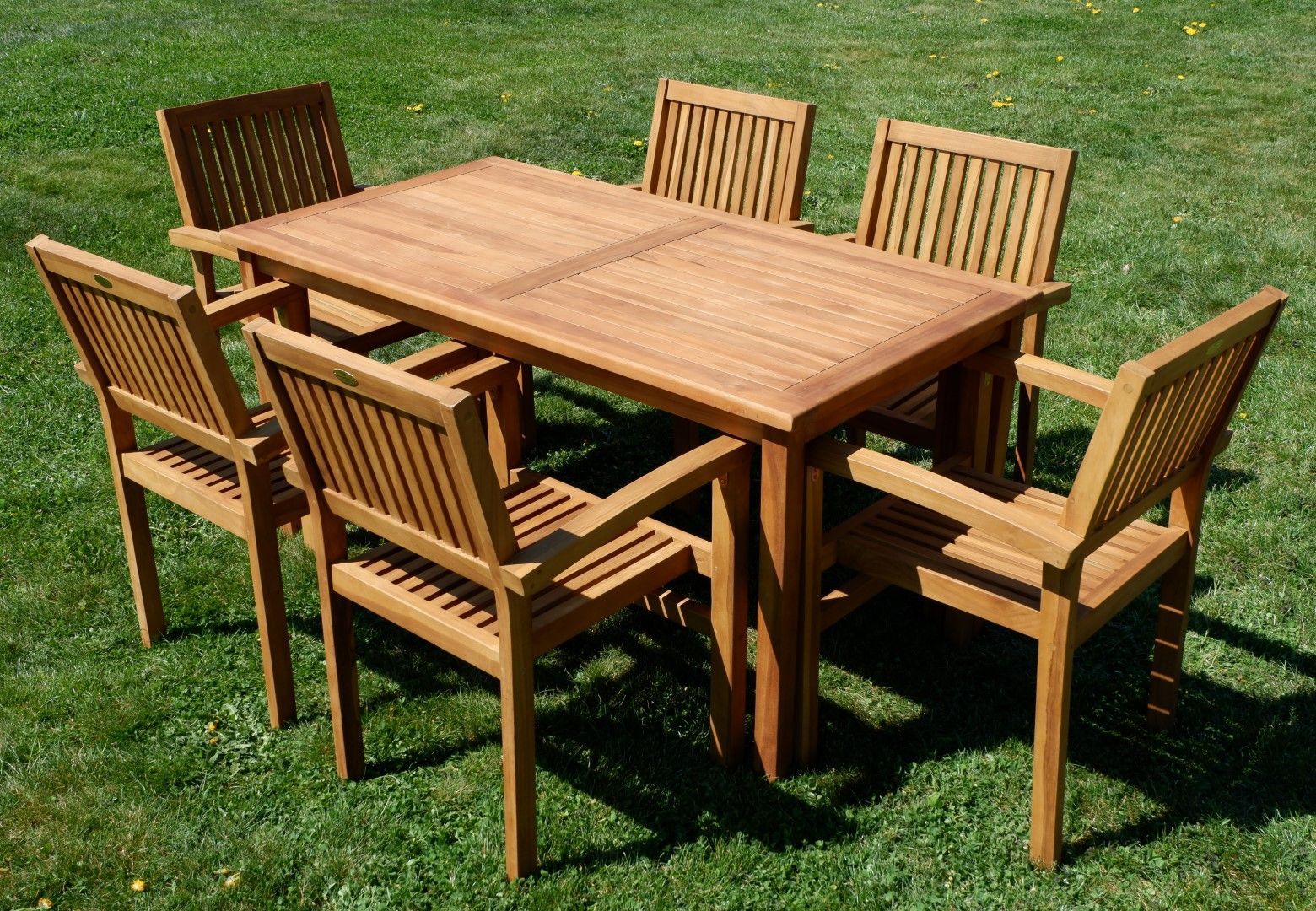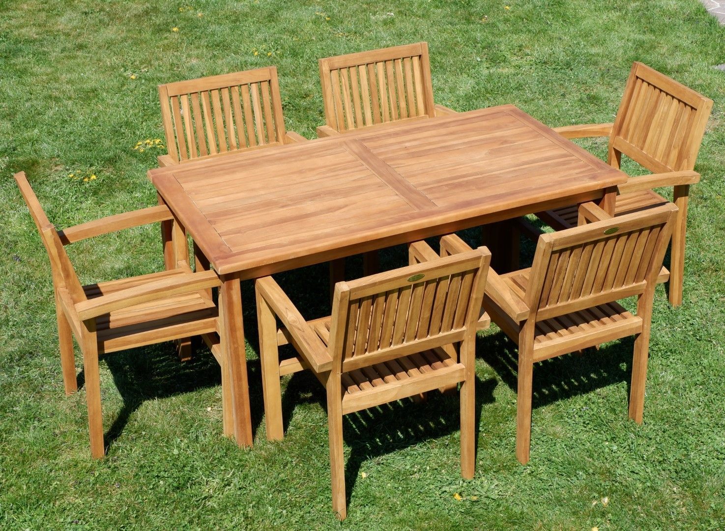 ASS TEAK SET Gartengarnitur Gartentisch 150x80cm + 6 Miami Sessel stapelbar Teakholz