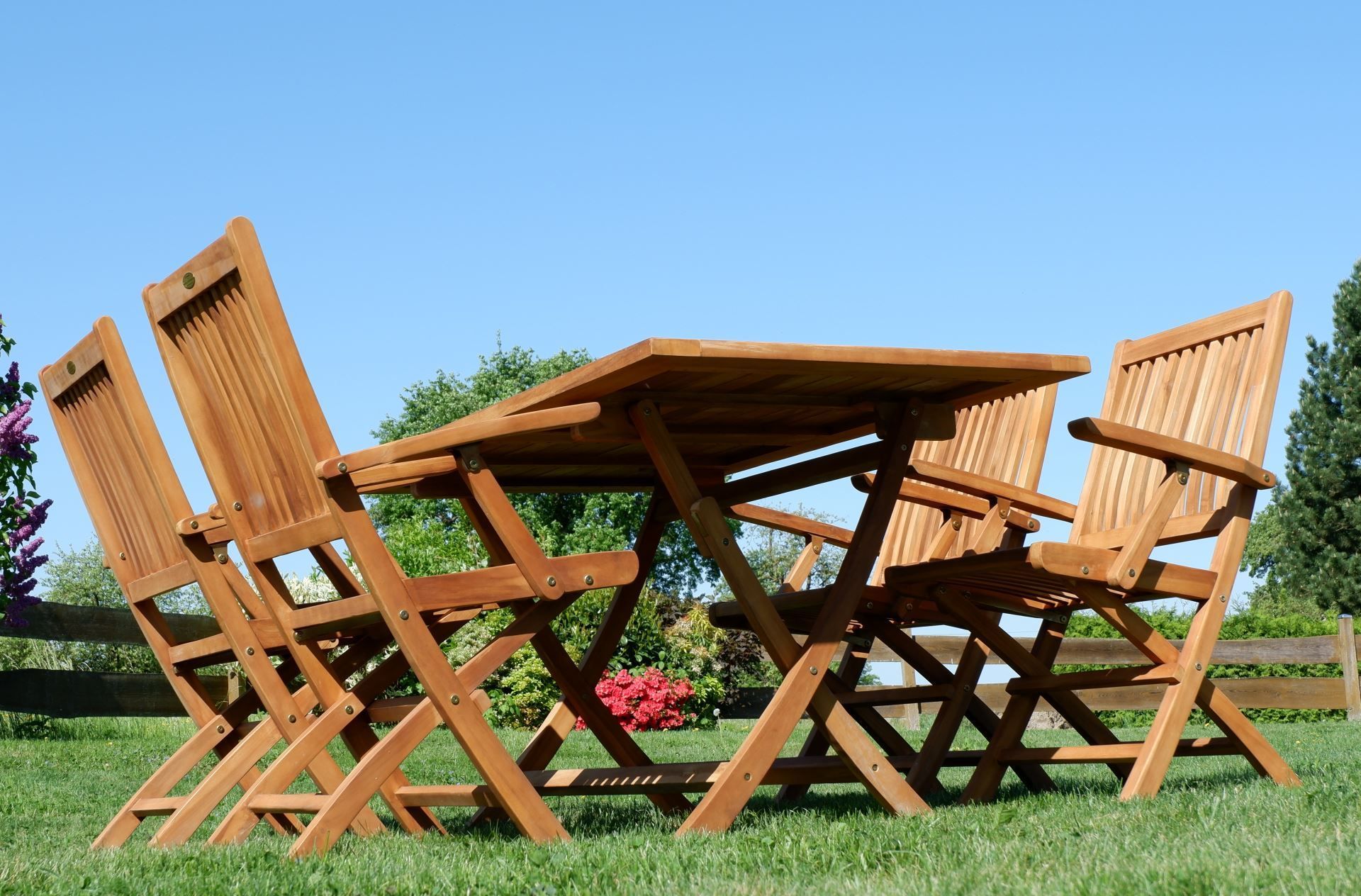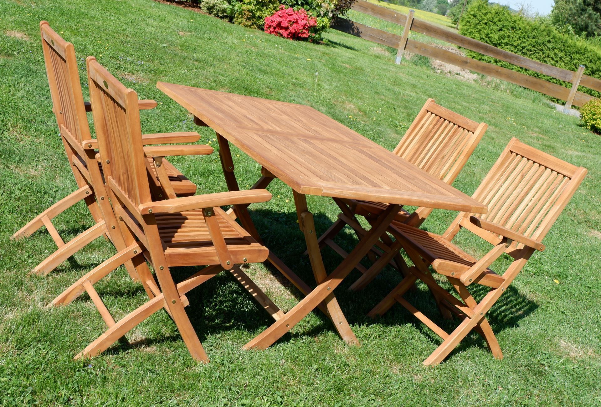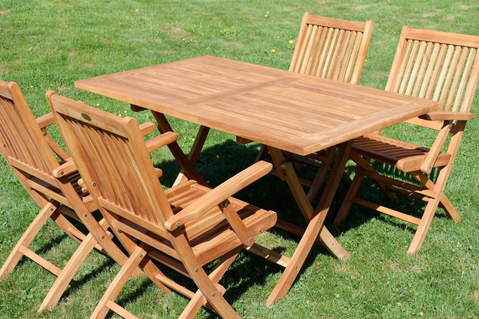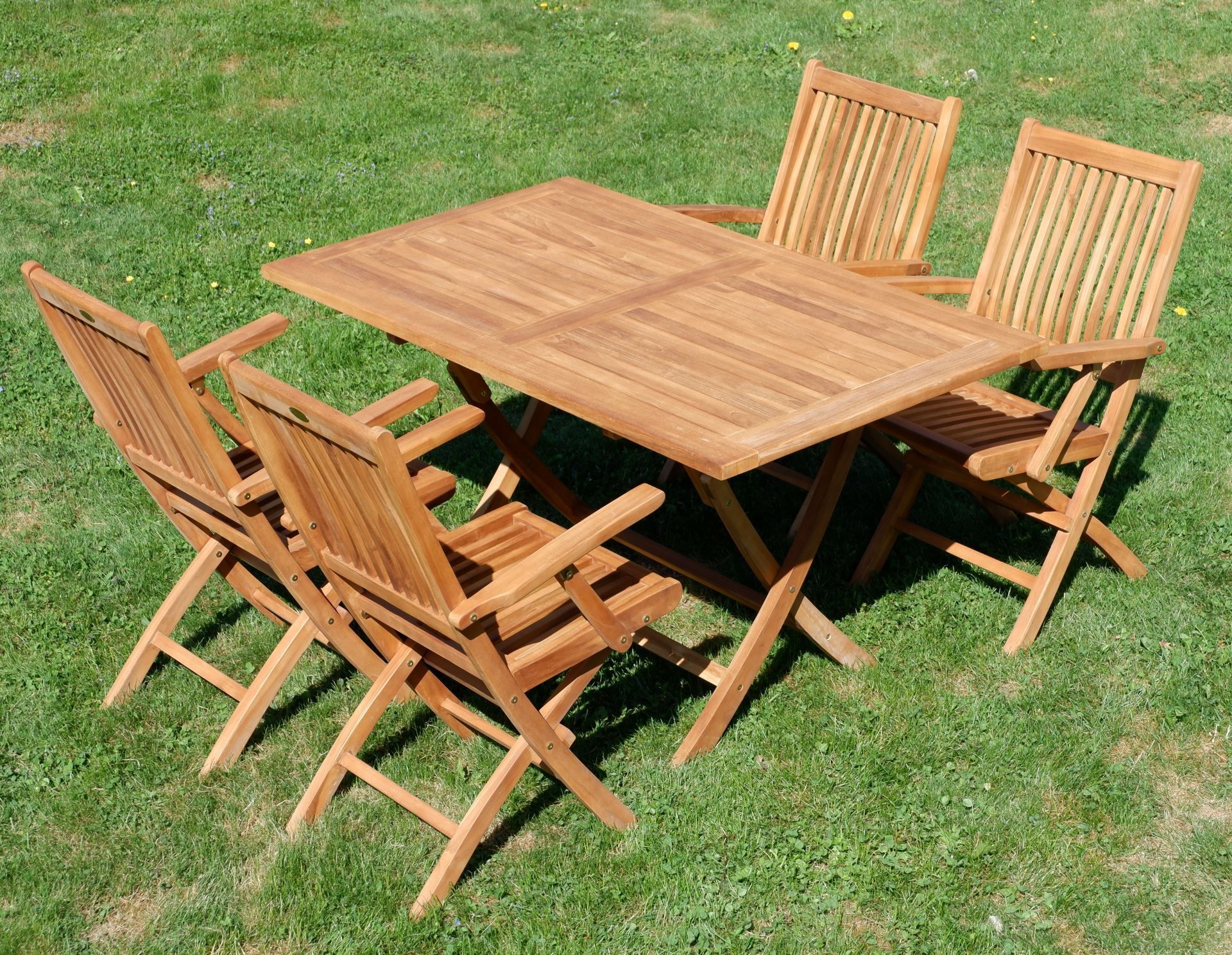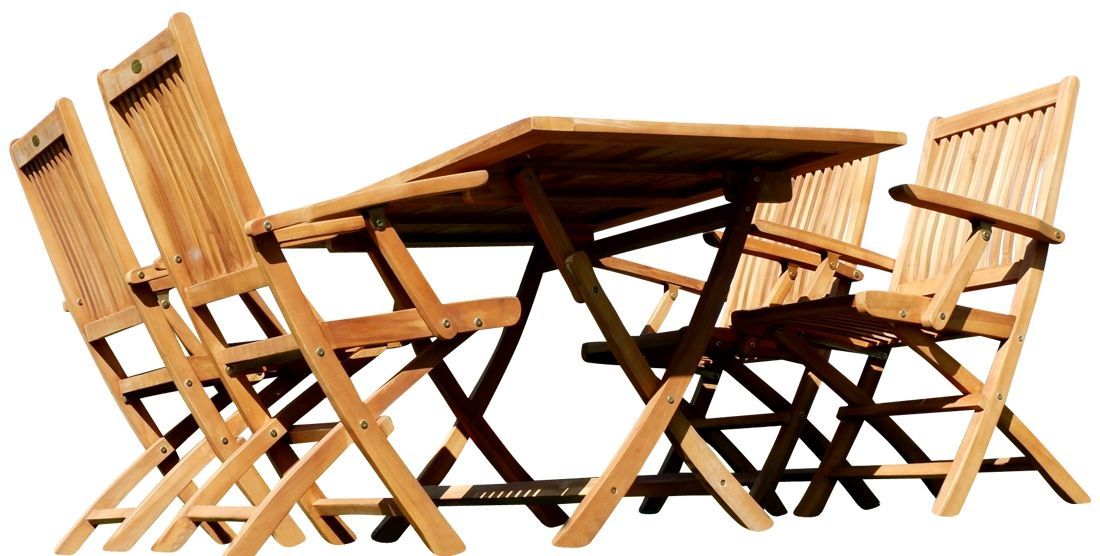 ASS TEAK SET: Gartengarnitur Klapptisch 140x80 + 4 Klappsessel + Armlehne Holz