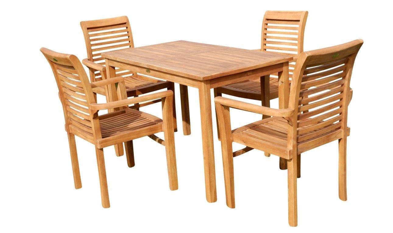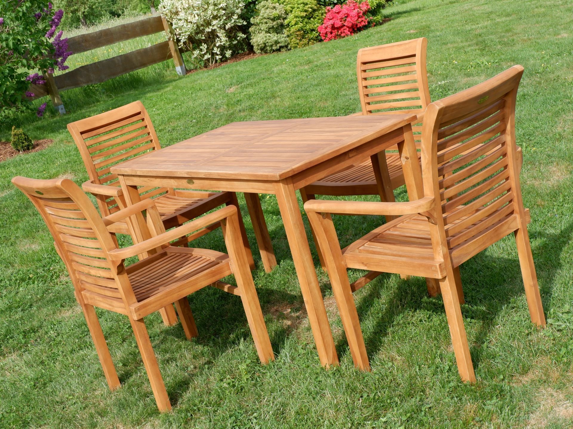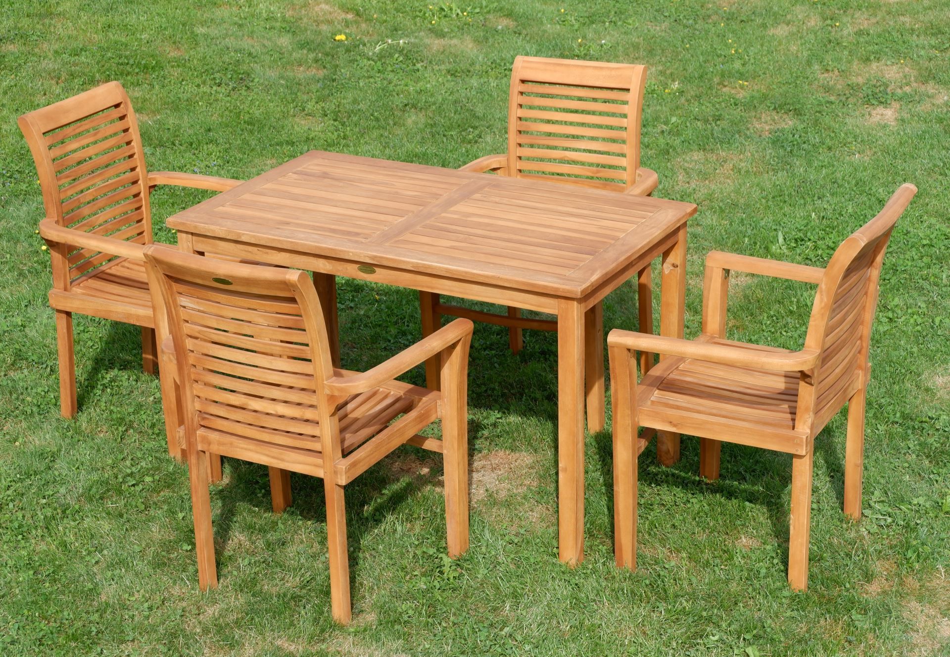 ASS TEAK SET: Gartengarnitur Tisch 120x70 cm + 4x Sessel ALPEN Gartenmöbel Holz