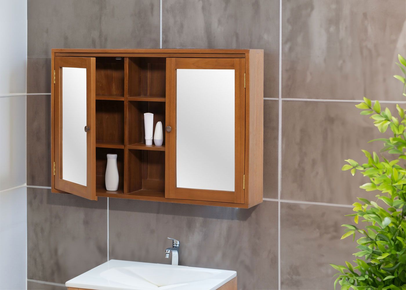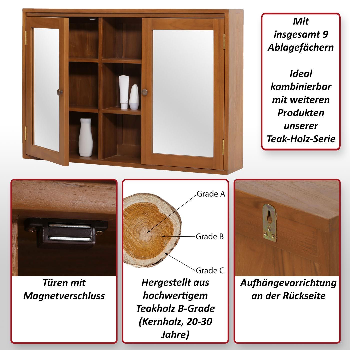Mendler Teak-Spiegelschrank HWC-M85, Badspiegelschrank, hochwertiges B-Grade-Teak