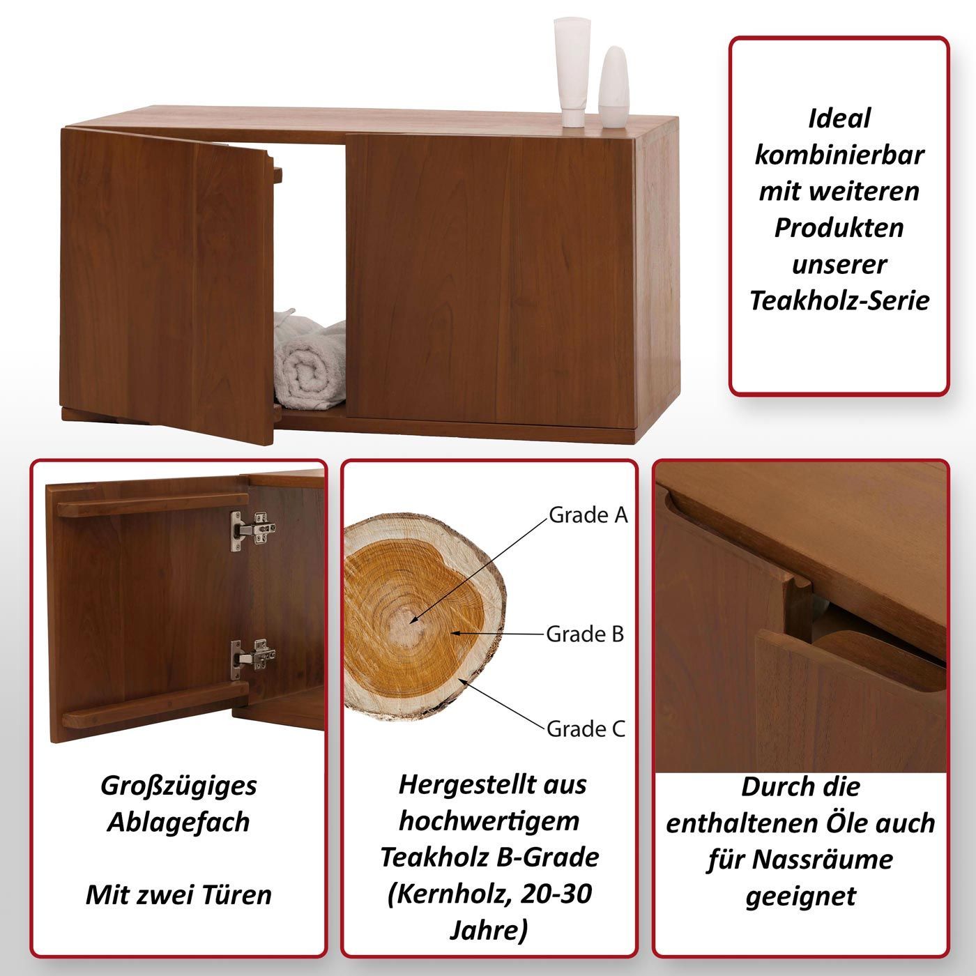 Mendler Teak-Waschbeckenunterschrank HWC-M86, Waschtisch, hochwertiges B-Grade-Teak
