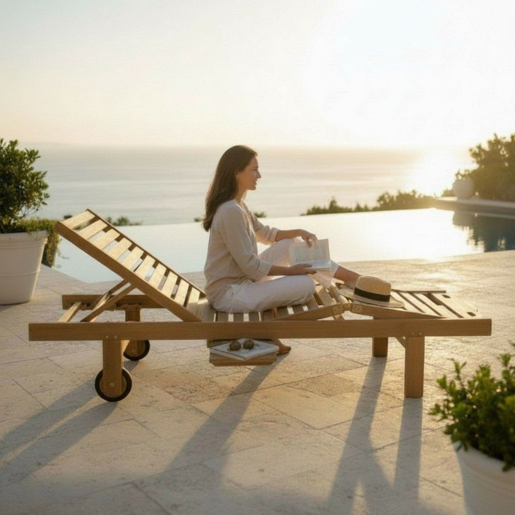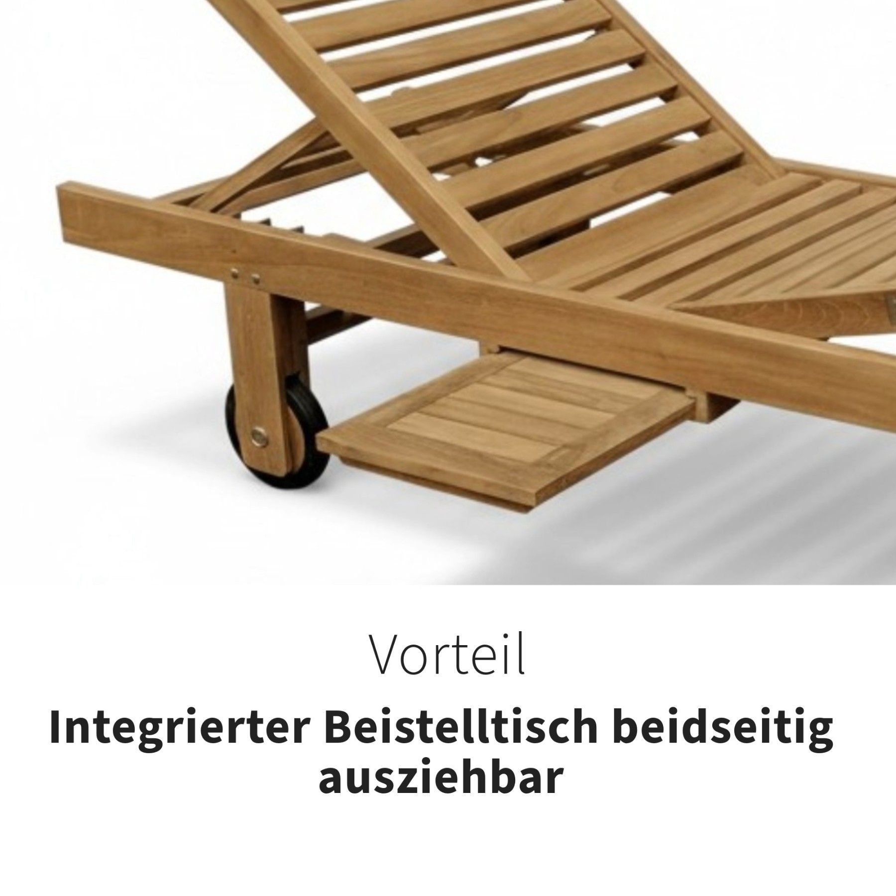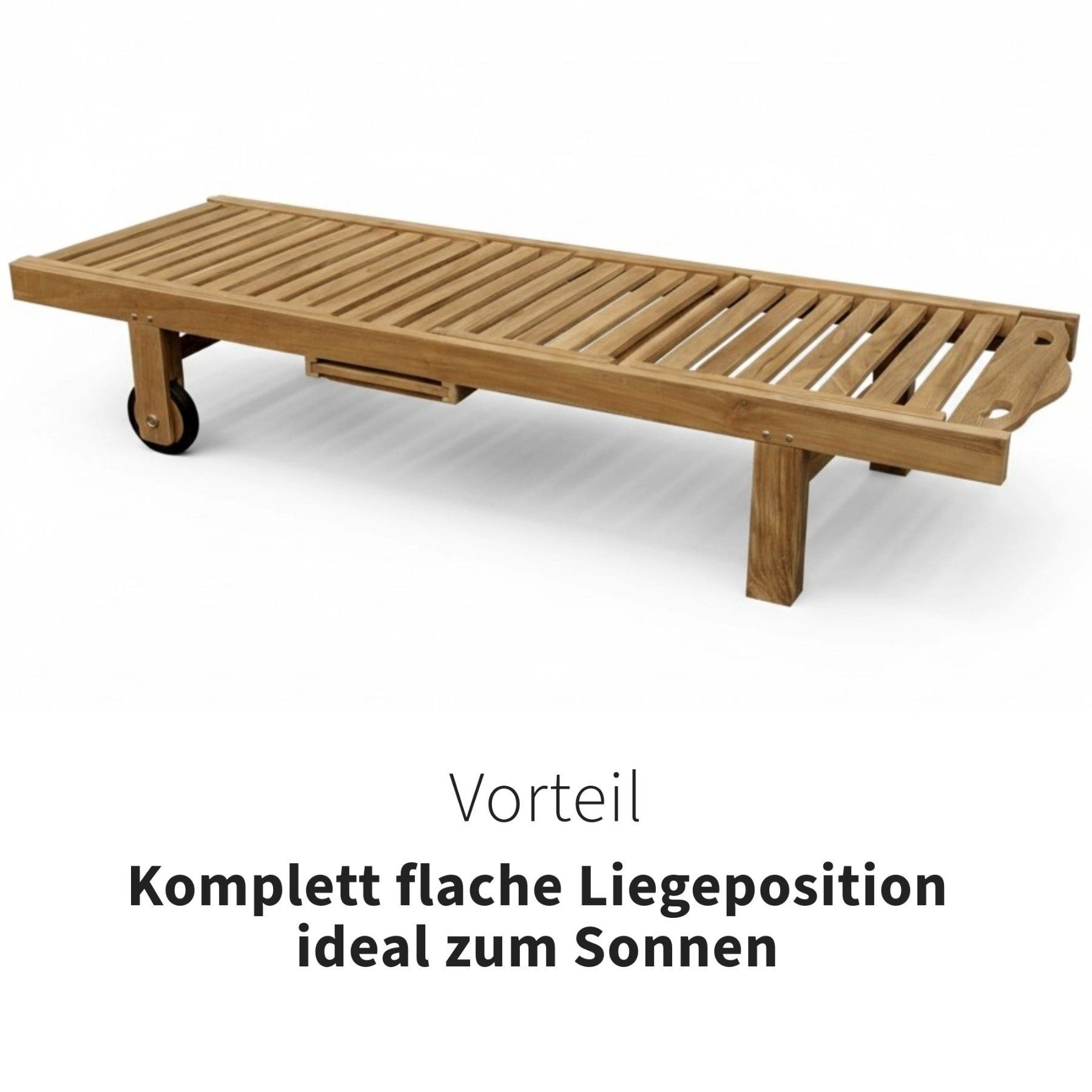 Teakholz Gartenliege Starnberg 200 cm mit Rollen & Beistelltisch SVLK Teak
