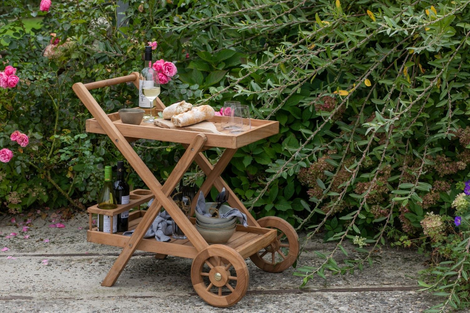 Teakholz Outdoor Garten Servierwagen mit Rollen - bene living - Chester