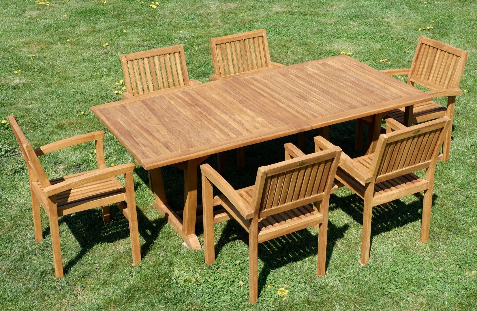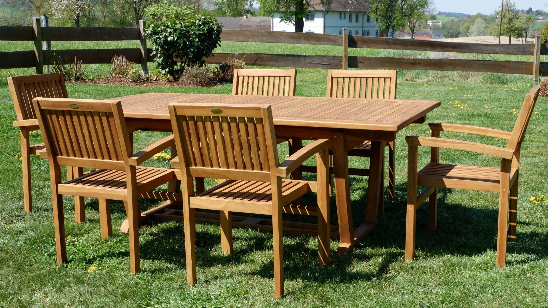 ASS Teakholz SET Gartengarnitur Gartentisch 300x100 cm + 6 Miami Sessel stapelbar