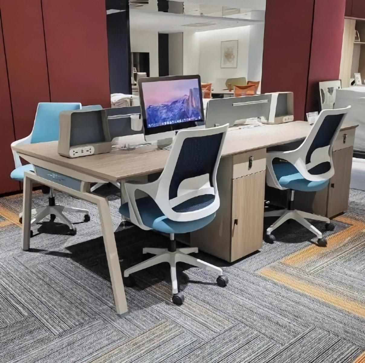 Team Schreibtisch Tisch Schreibtische Büro Einrichtung 240x120 + Aktenschrank