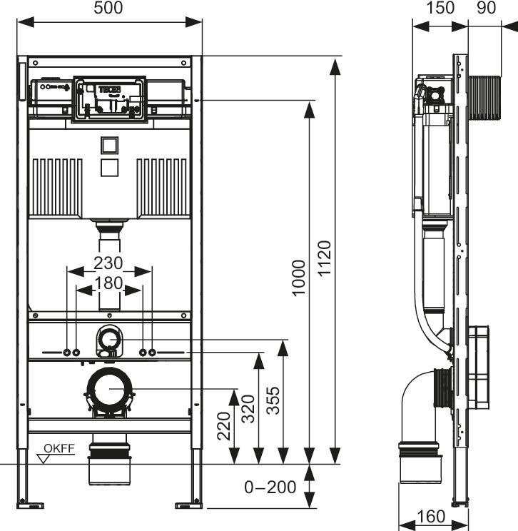 TECE TECE profil WC-Modul mit Uni-Spülkasten, BH 1120mm, inkl. easy fit BTP-Montage