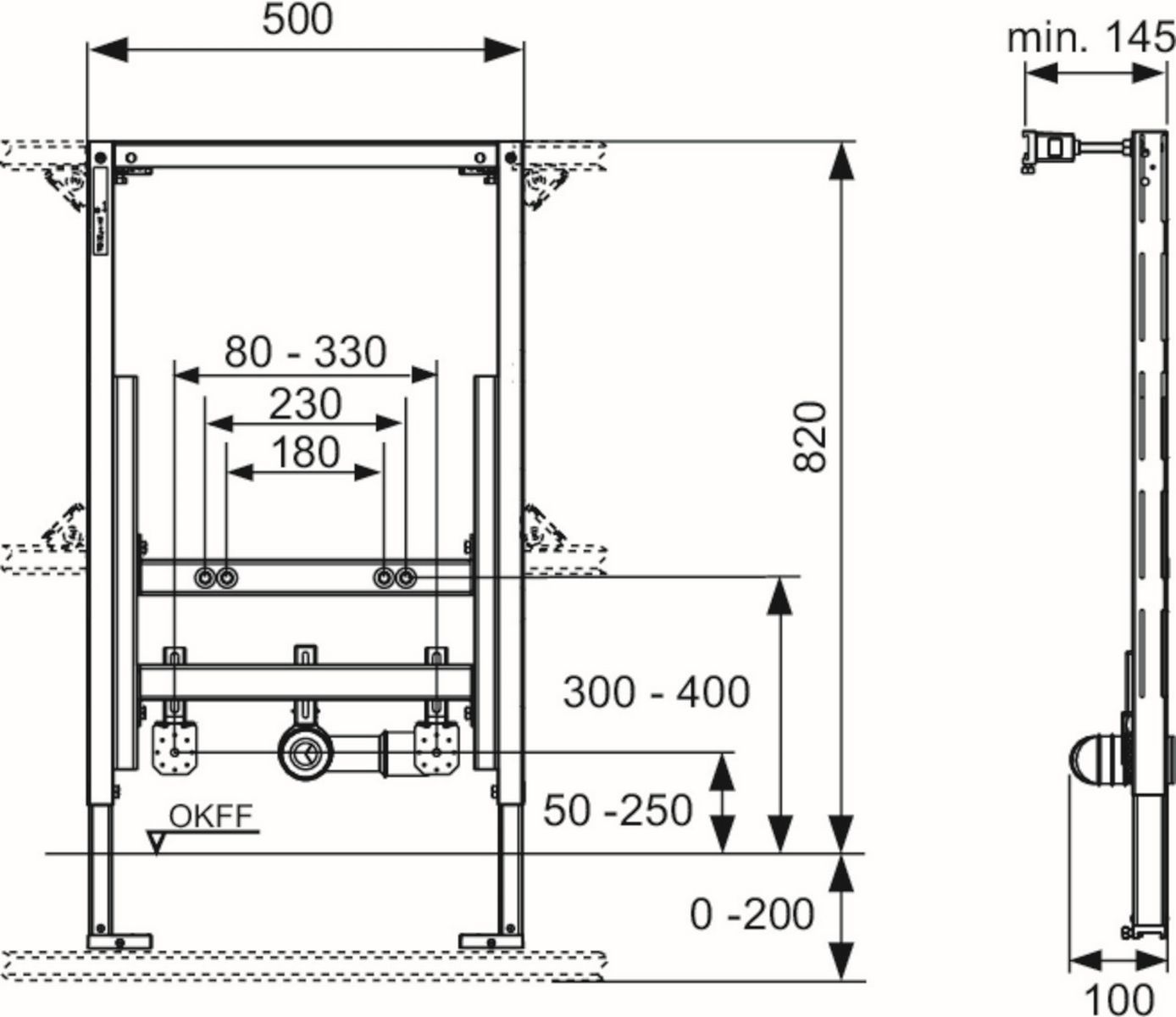 TECE TECEprofil Universalmodul für wandhängendes Bidet, Bauhöhe 820mm