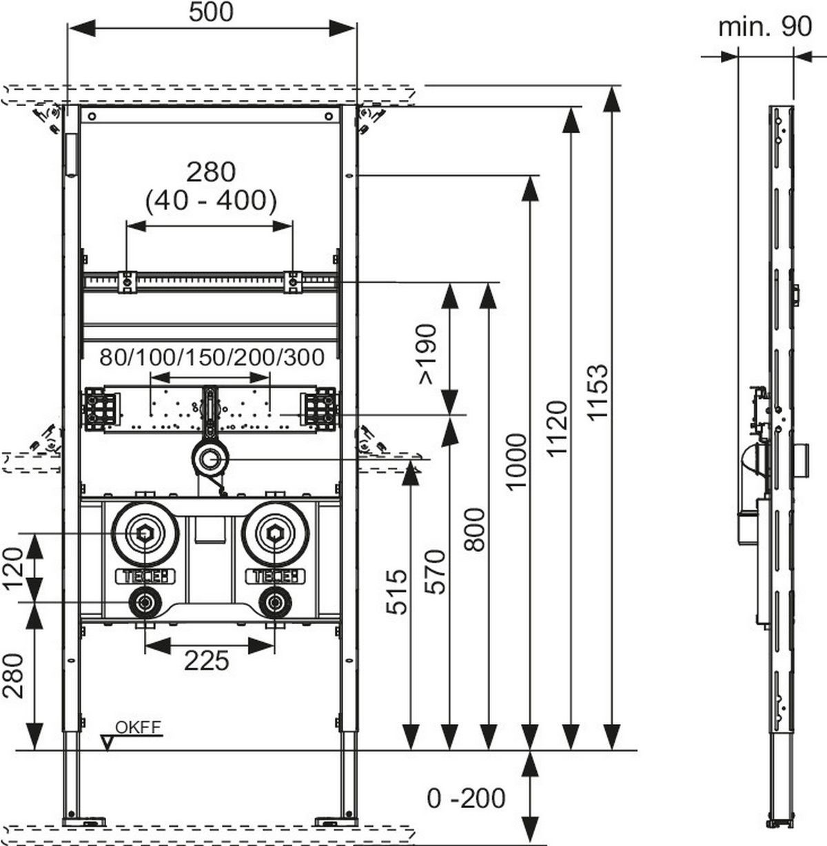 TECE TECEprofil Waschtischmodul Bauhöhe 1120 mm inkl. 2 Montageblöcke f. Wasserzähler