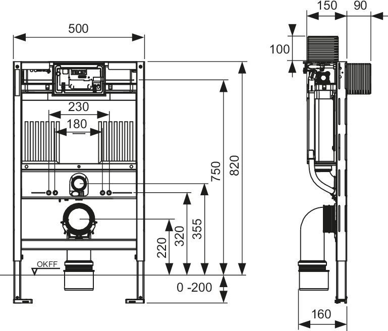 TECE TECEprofil WC-Modul mit Uni-Spülkasten, BH 820mm, inkl. easy fit BTP-Montageo