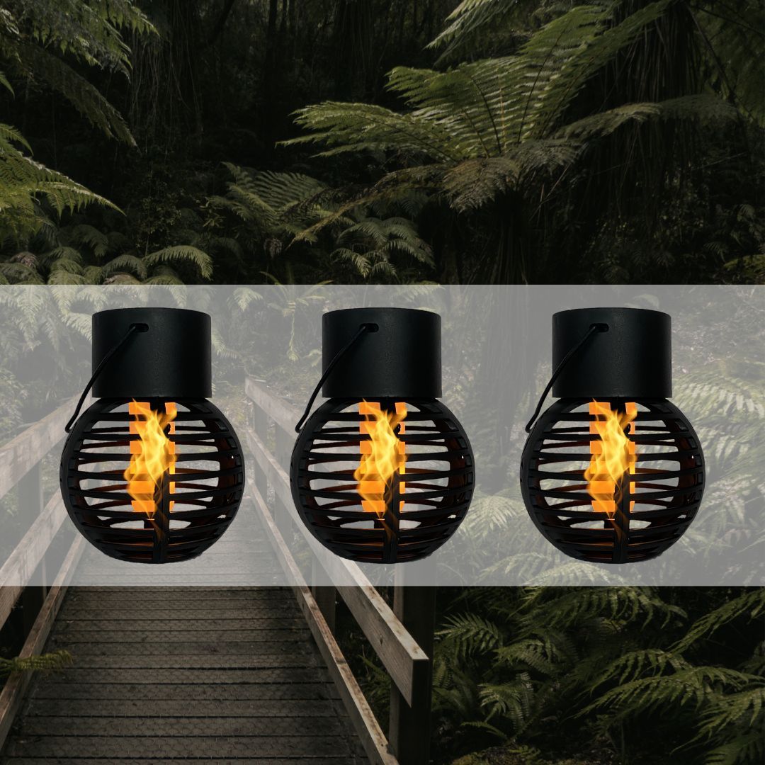 technik@all LED Solar-Hängeleuchten mit Flammeneffekt 3er Set