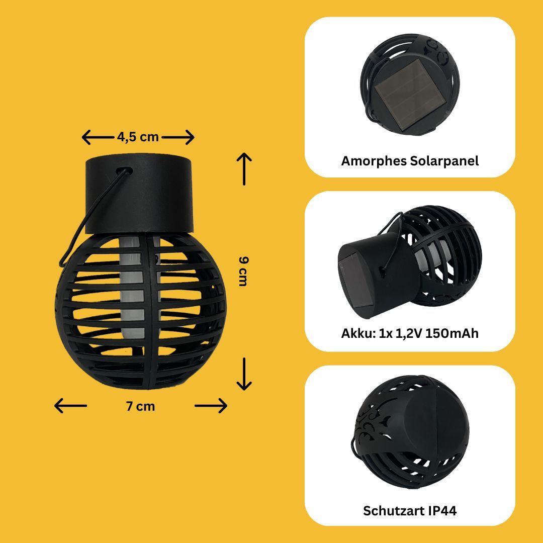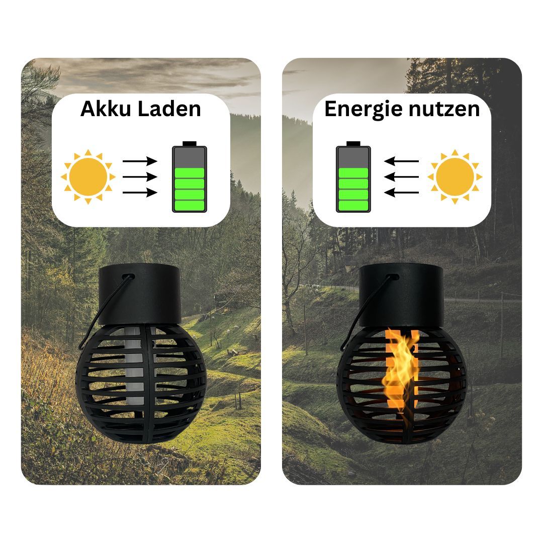 Die LED-Hängeleuchten mit Flammeneffekt werden mit Sonnenenergie betrieben und können daher ganz flexibel im Außenbereich platziert und energieneutral betrieben werden. Das Set ist der perfekte dekorative Lichtspender für Ihren Garten, an Bäumen, auf dem Balkon, der Terrasse, uvm. Die Solar-Hängeleu