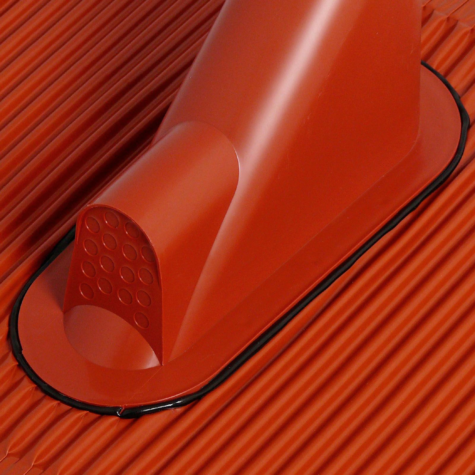 Der Alu-Dachziegel ermöglicht eine vom Dachziegel unabhängige, wasserdichte Mast- und Kabeleinführung. Das Format beträgt 450 x 500 mm, lässt sich an alle Ziegelformen anpassen und ist passend für alle Masten von 38 - 60 mm. Für eine optimale Abdichtung ist der Alu-Dachziegel am unteren Rand und an