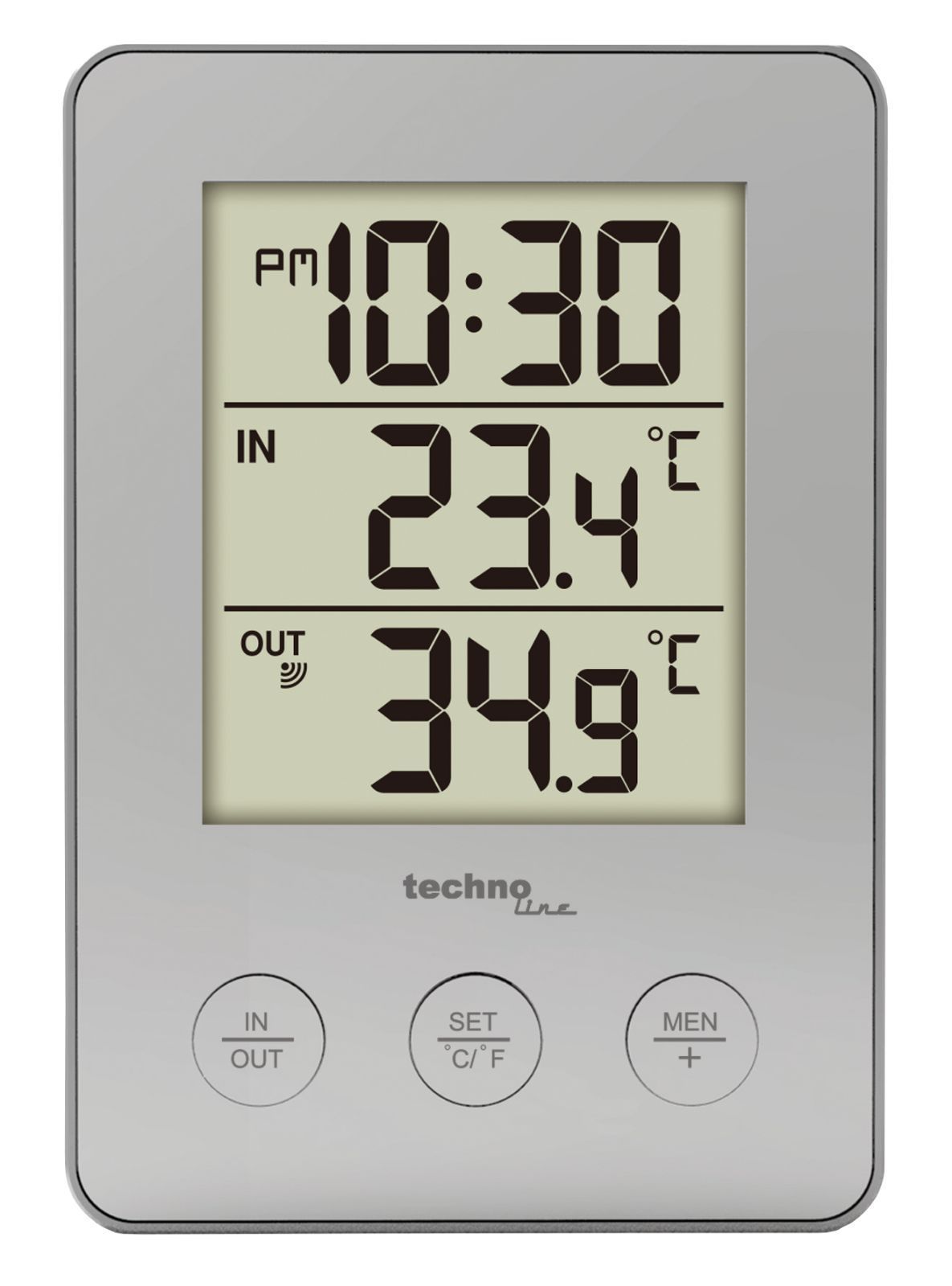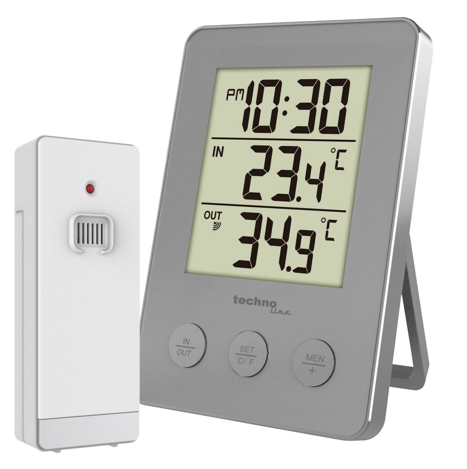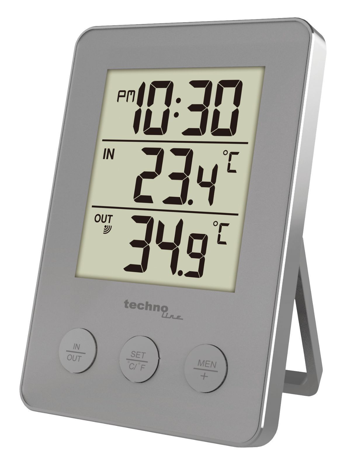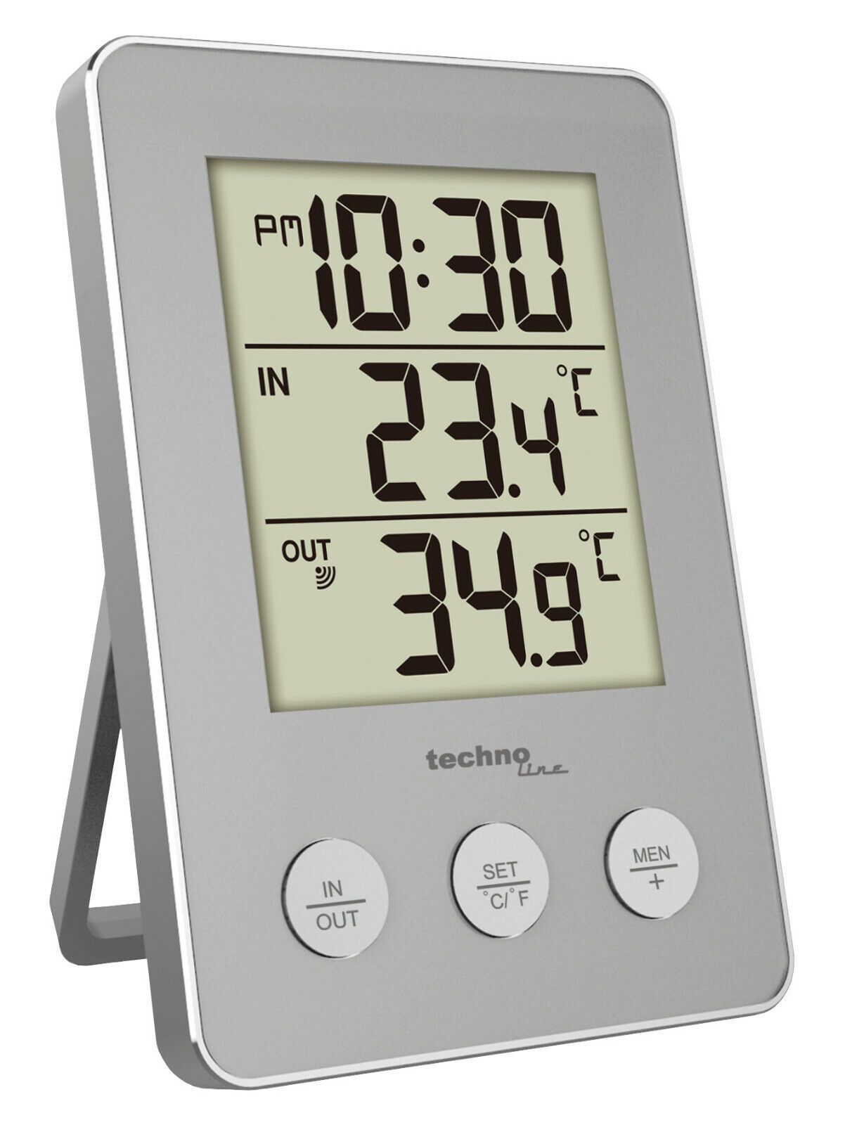 Technoline Technoline Digitale Quarzuhr mit Innen-und Außentemperatur, silber, WS 9175