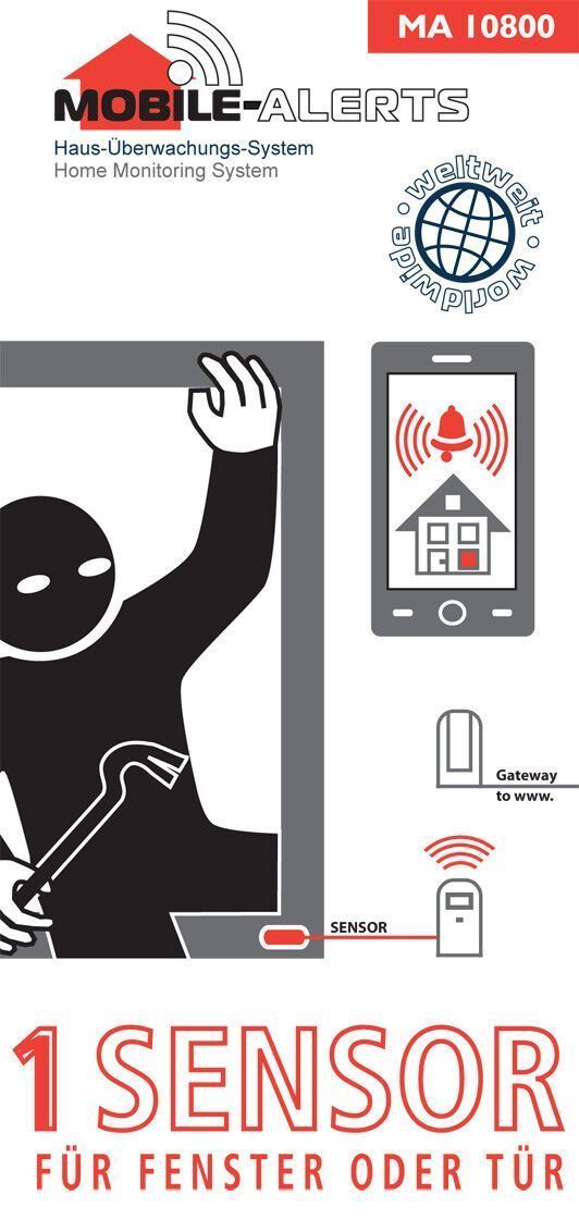 Zusatzsensor für das Mobile Alerts Hausüberwachungssystem Überwacht permanent den Zustand von Fenster,Tür etc.und meldet Veränderungen unverzüglich via Push-Nachricht auf Ihr Smartphone Sie benötigen für die Inbetriebnahme dieses Zusatzsensors die Mobile Alerts App (kostenfrei für iOS und Android er