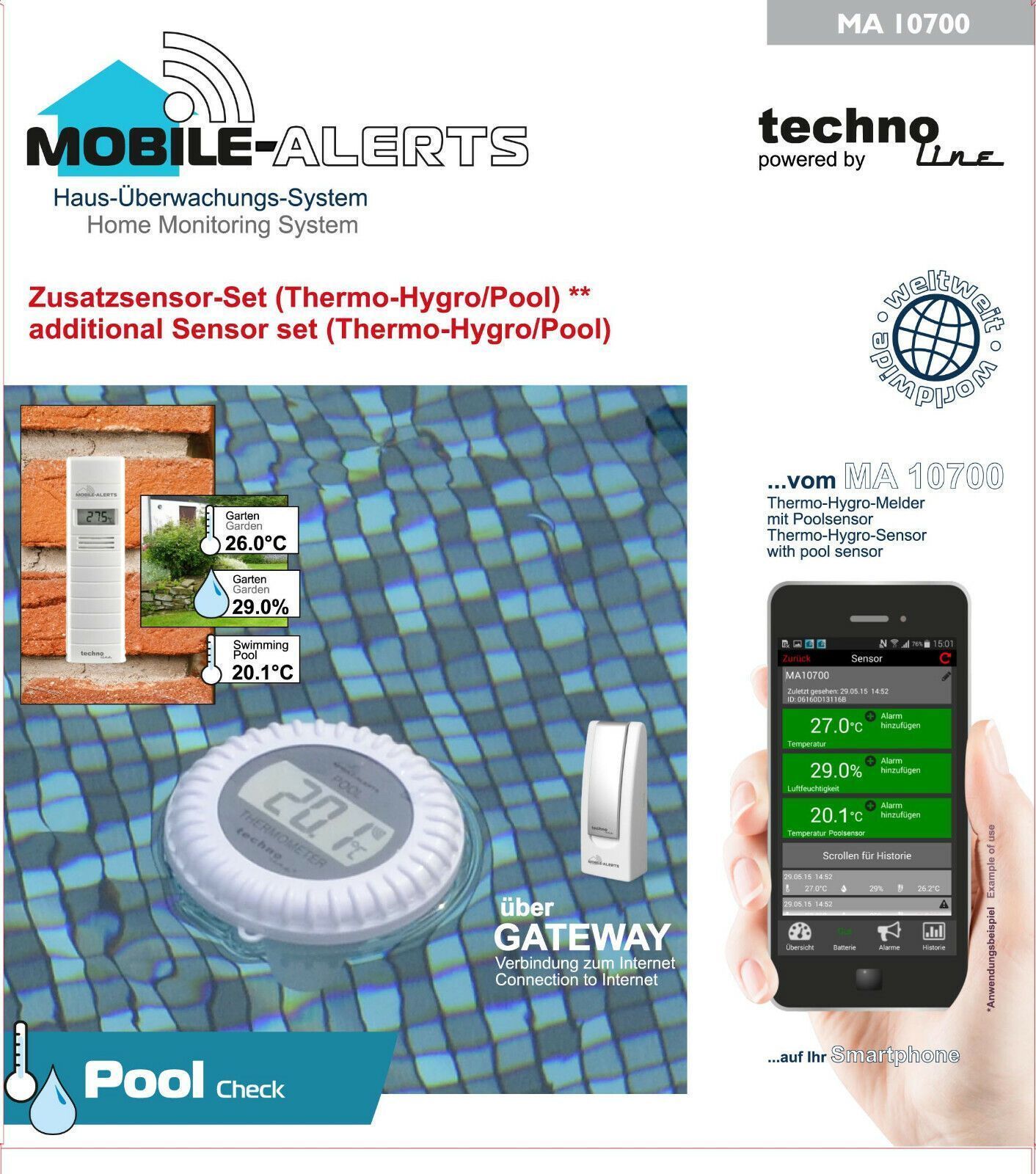 MA 10700 MOBILE ALERTS High-End-Produkt Hohe Qualität unschlagbares Preis-Leistungsverhältnis Umfangreiches zusätzlich erwerbbares Zubehör zum Ausbauen der Basisstation Alle Daten auf Ihr Mobiltelefon, weltweit abrufbar Wassertemperaturmessbereich: 0°C bis 59,9°C Temperaturmessbereich: -39°C bis 59,