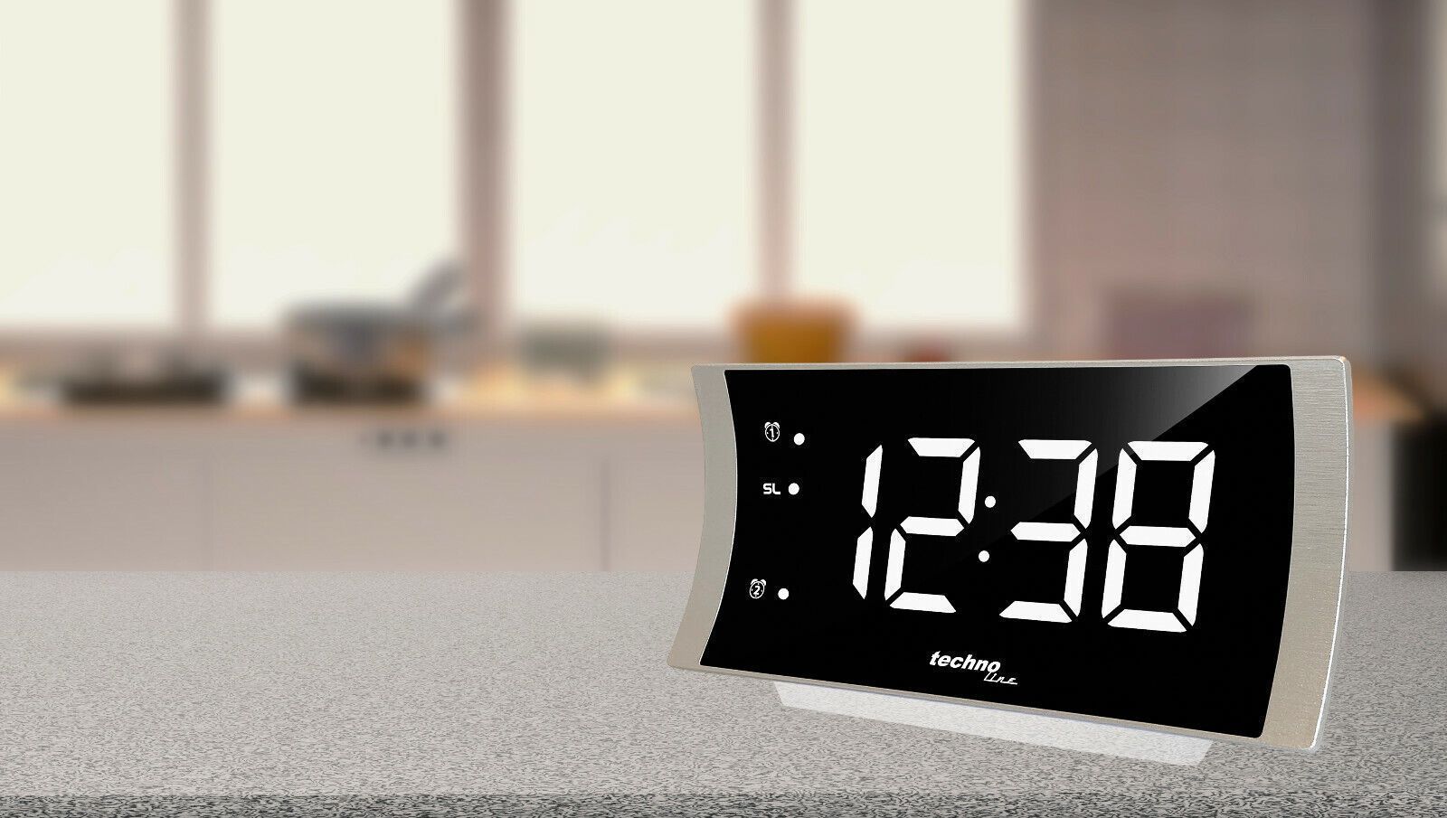 Technoline WT 494 moderner LED Radiowecker Curved mit Temperatur, Stimmungslicht