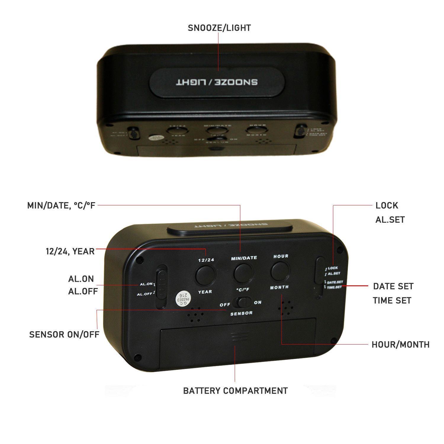 Technoline technoline WT400 Quarzwecker | Datumsanzeige | Nachtlicht mit Helligkeitssensor