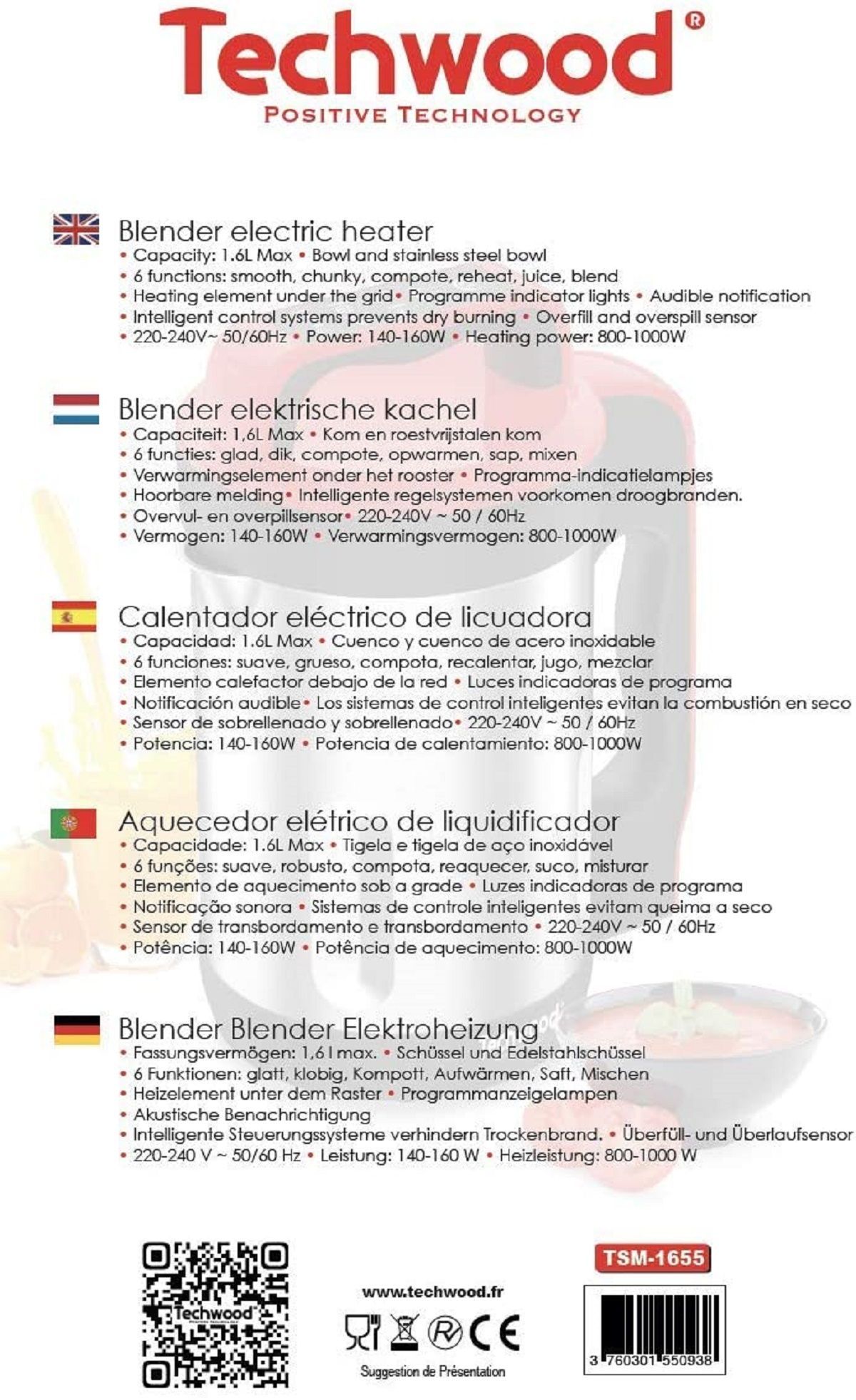 Techwood Techwood TSM-1655 Standmixer, beheizbar, Kapazität 1,6 l, Suppe samtig, Kompot,