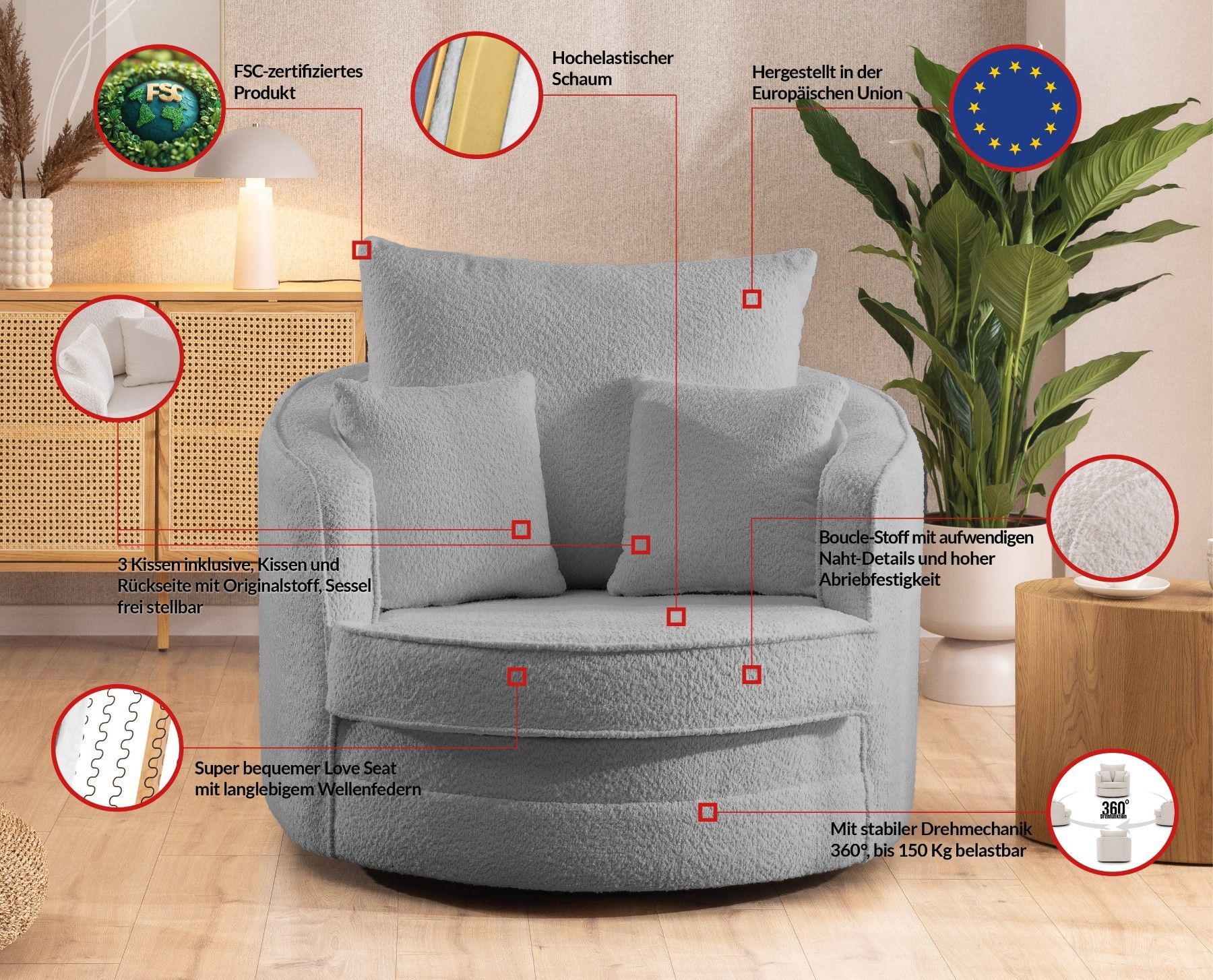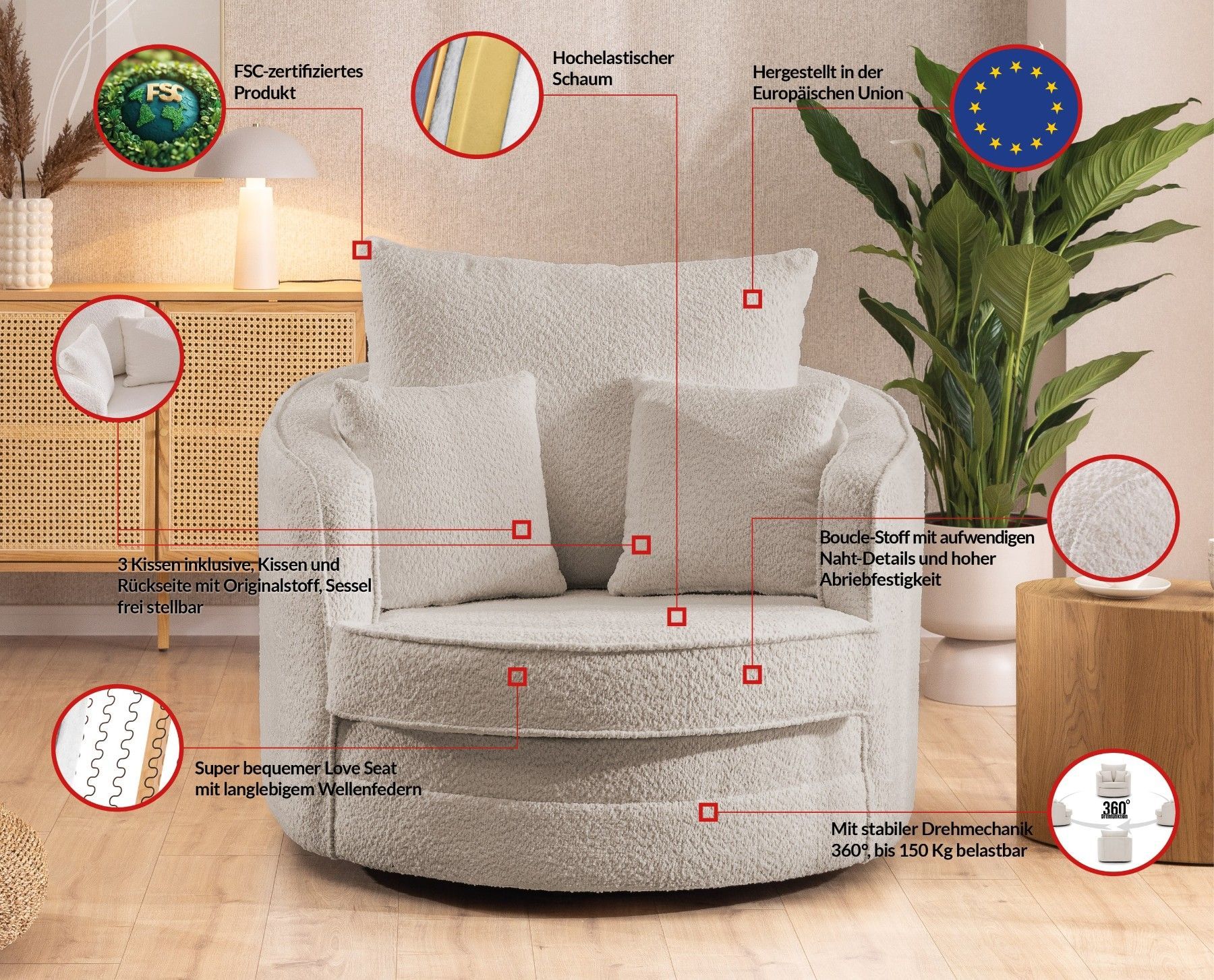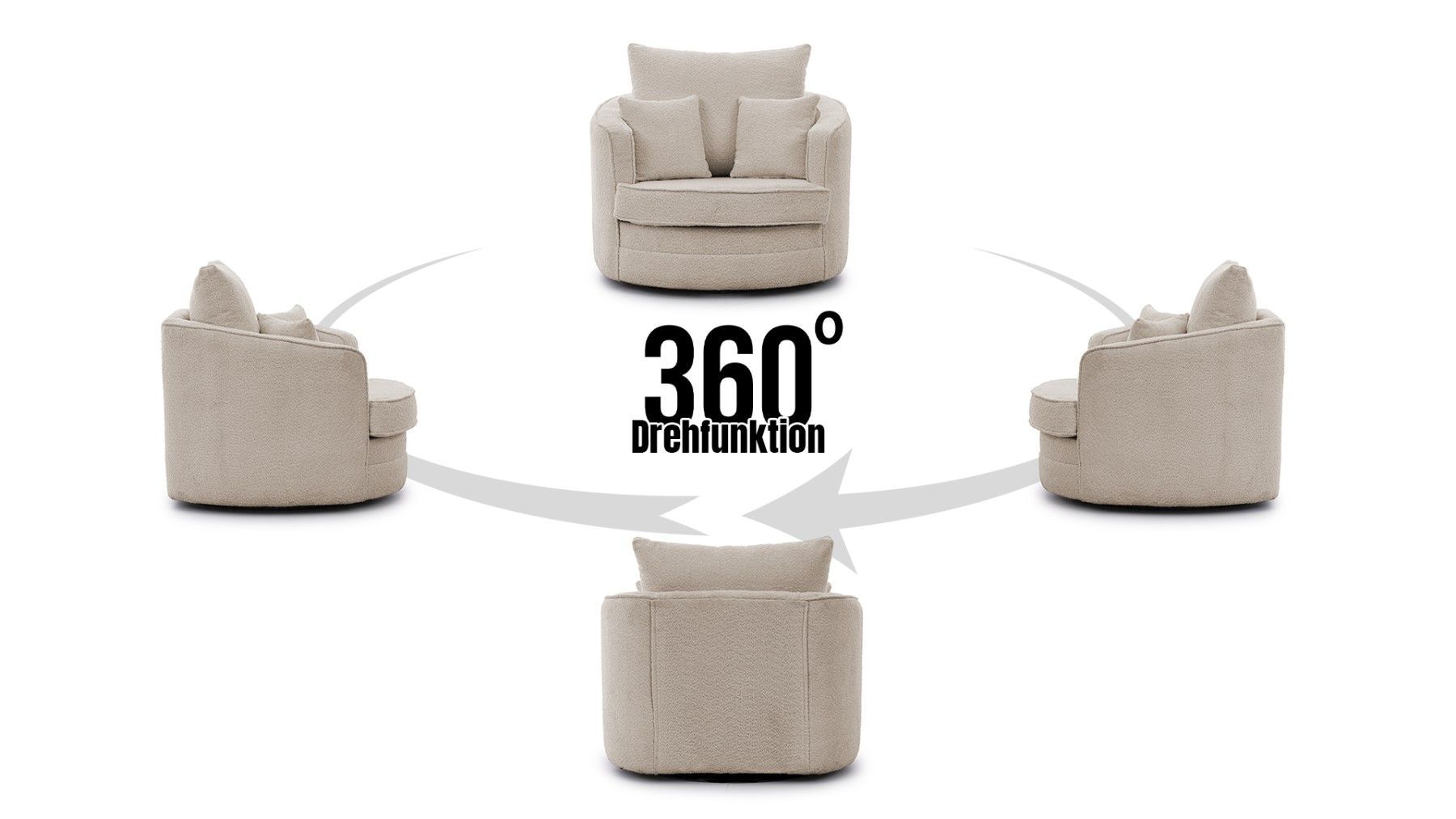 Ted - Drehsessel Love Seat XXL 360 Grad drehbar aus Boucle-Stoff