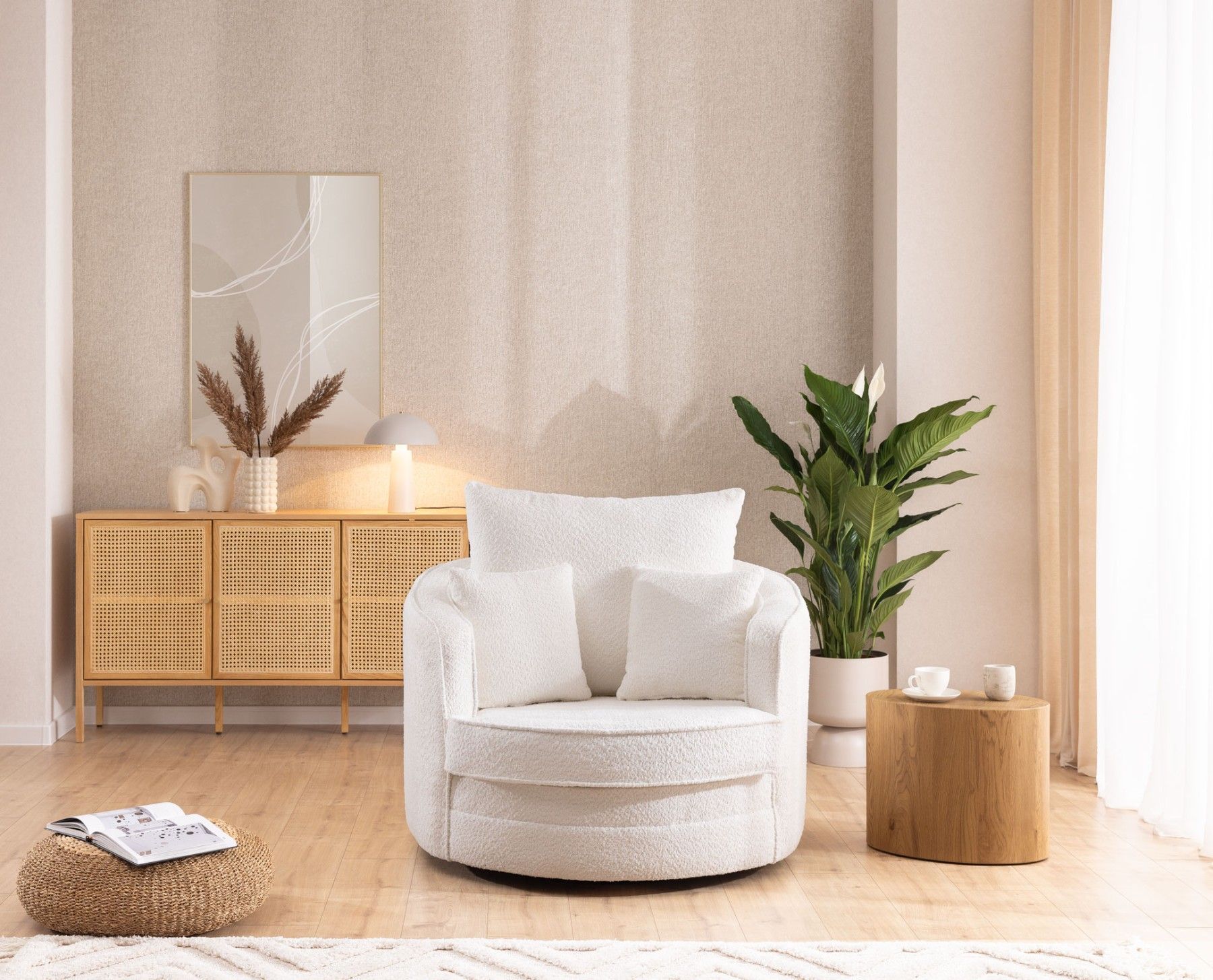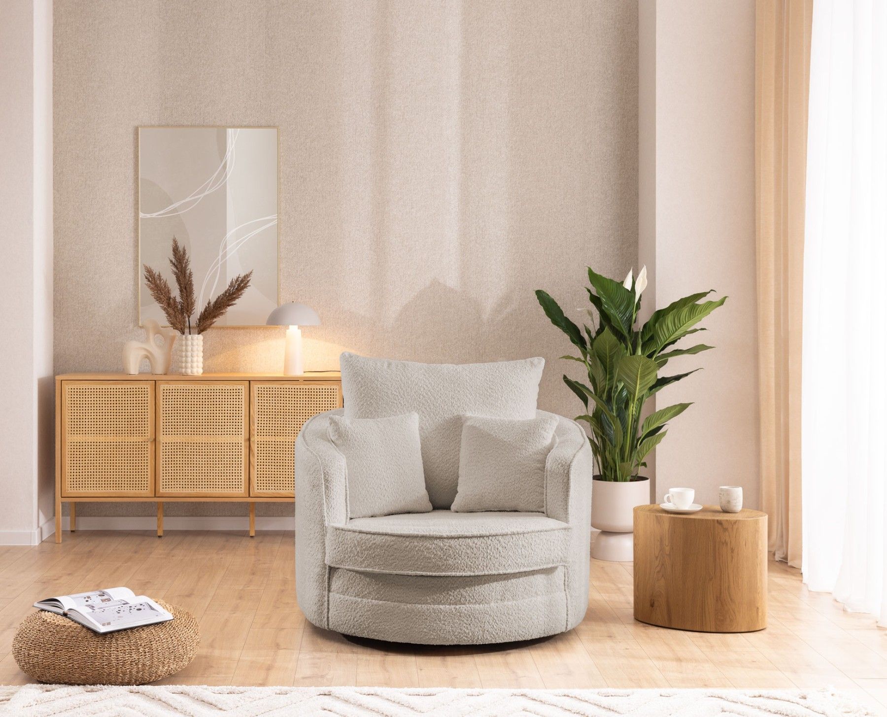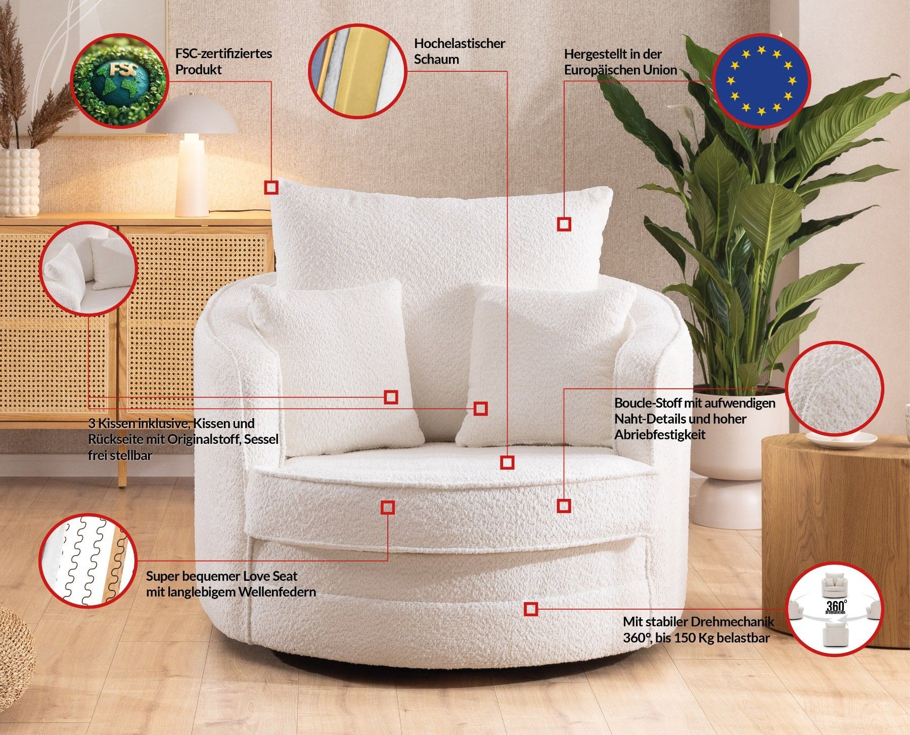 Ted - Drehsessel Love Seat XXL 360 Grad drehbar aus Boucle-Stoff