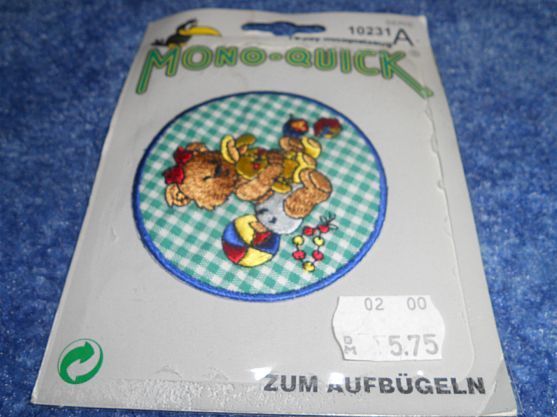 Biete in dieser Auktion an: Applikation zum Aufbügeln-zum Ausbessern von Löchern bzw. Verschönern von Kleidungsstücken Teddy mit Spielzeug 7cm Durchmesser aus Privathaushalt, gut erhalten Da ich viele weitere Artikel im Angebot habe, schaut einfach mal durch. Vielleicht ist das passende noch dabei.I