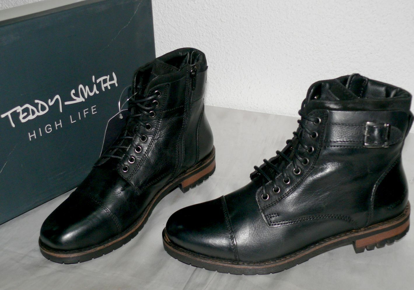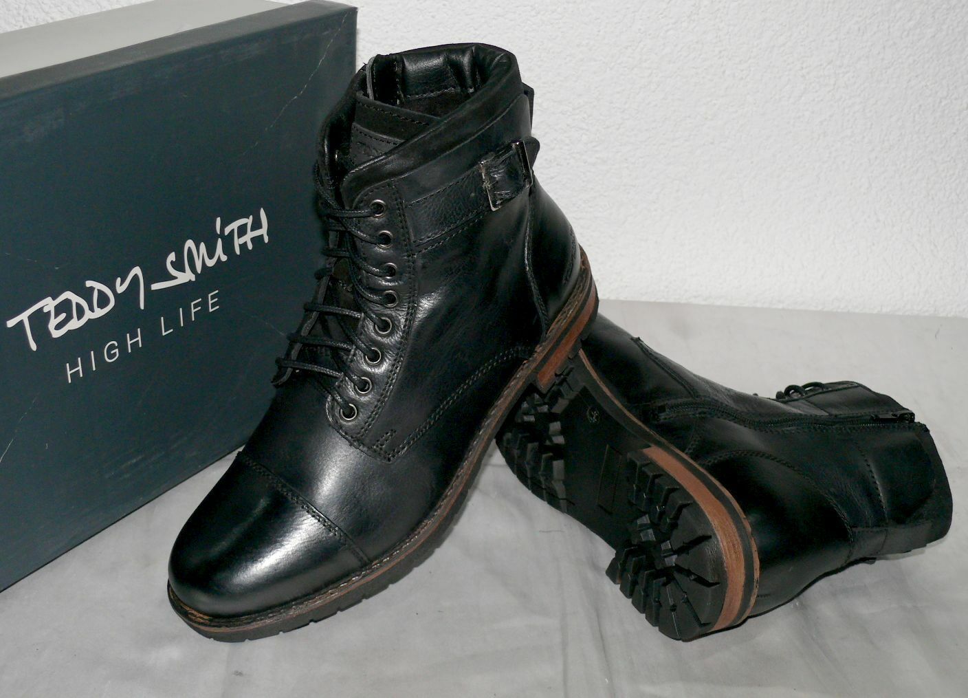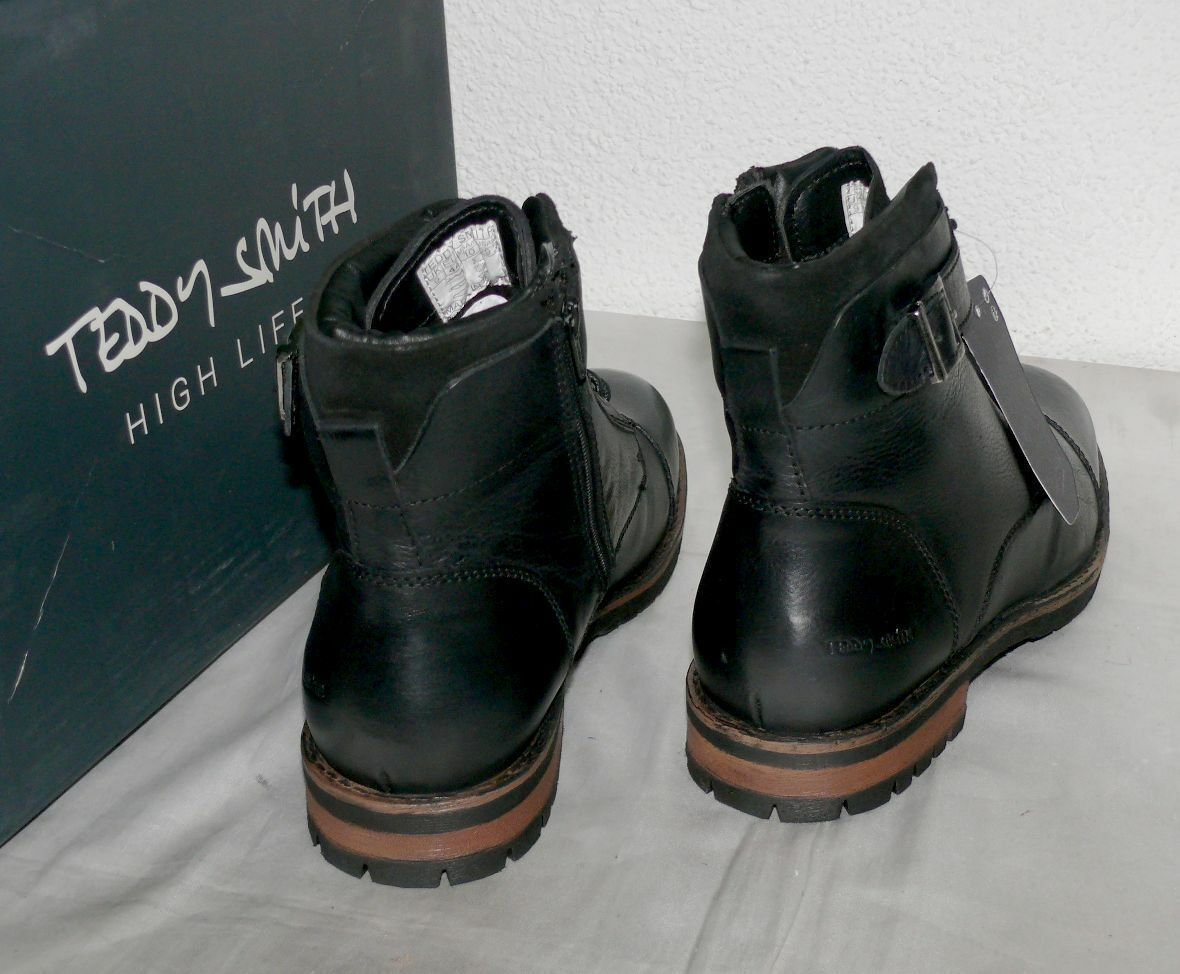 TEDDY SMITH TS55076 ZIP Herbst Winter Echt Leder Schuhe Boots Stiefel 44 45 BLK