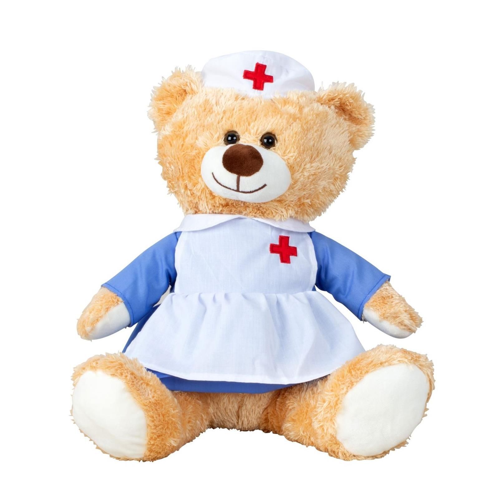 Teddybär 33 cm Hellbraun Krankenschwester Kittel
