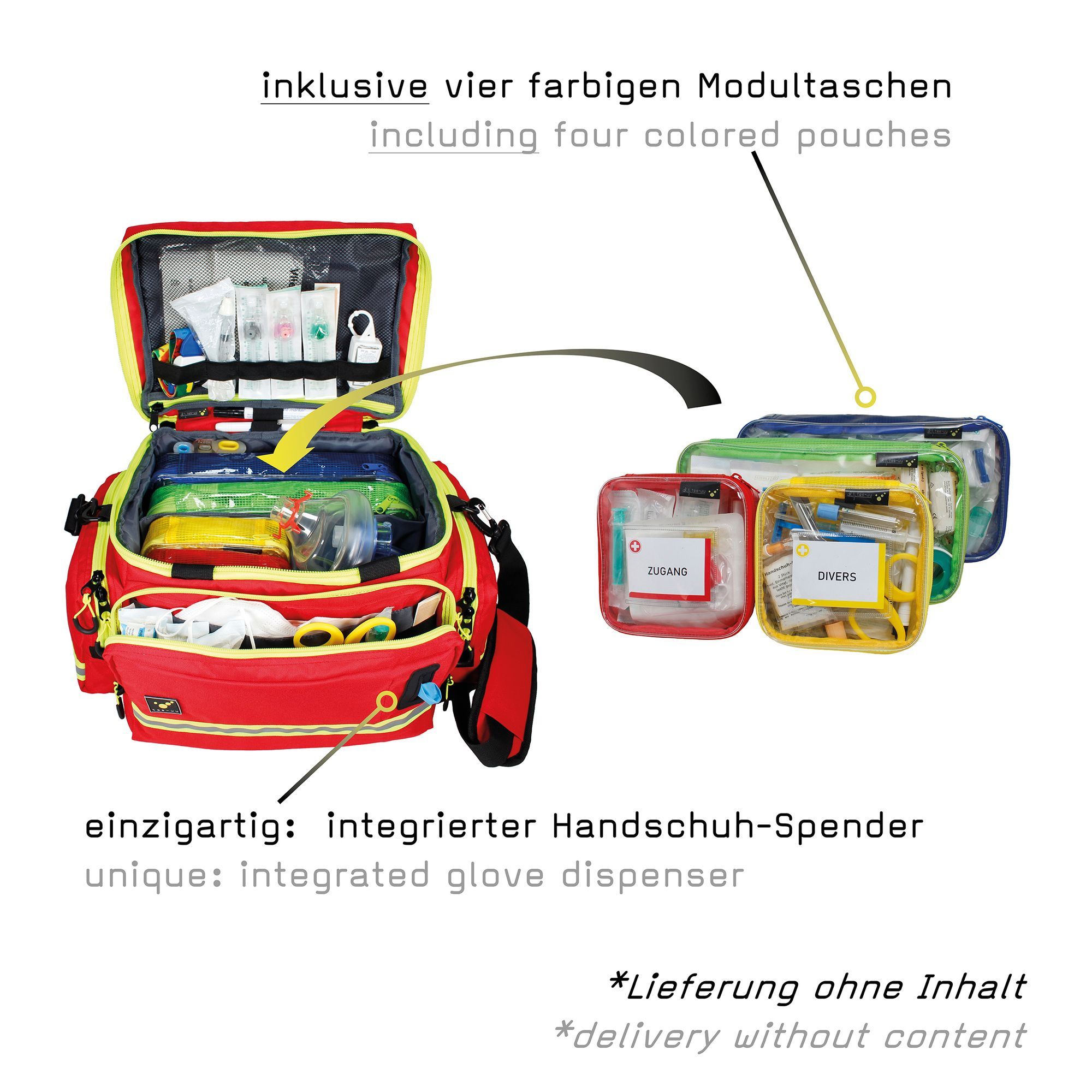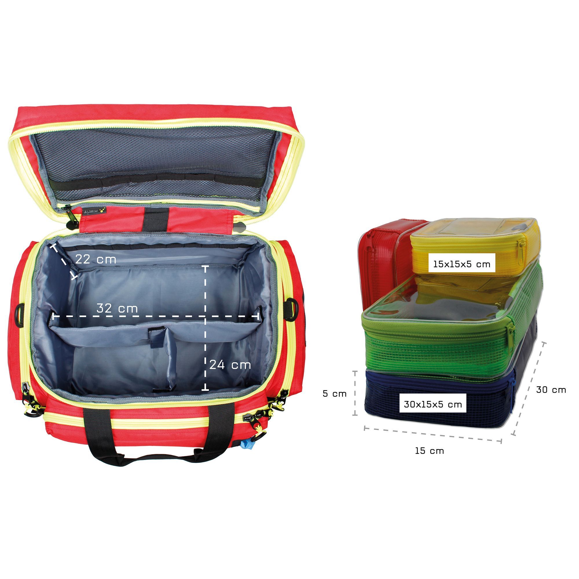 tee-uu MUC-M Notfalltasche 43 x 25 x 29,5 cm mit PRAXIS Modultaschen-Set MIXED