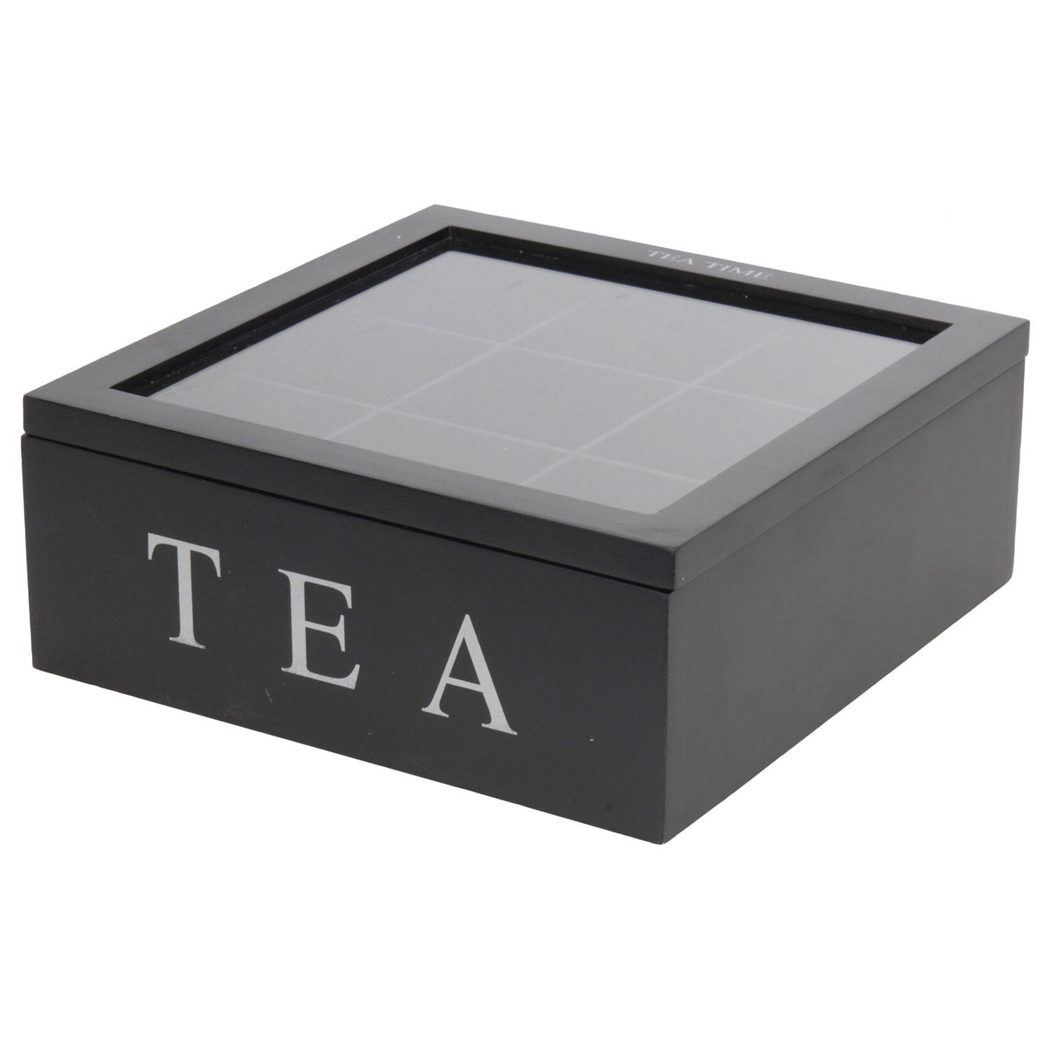 Teebox Holz Vorrats Tee Box Shabby Look Aufbewahrungsbox Schwarz Deckel TEA