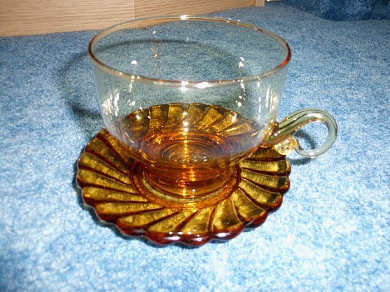 Teeglas mit Untertasse -gelb/ braun gefärbt