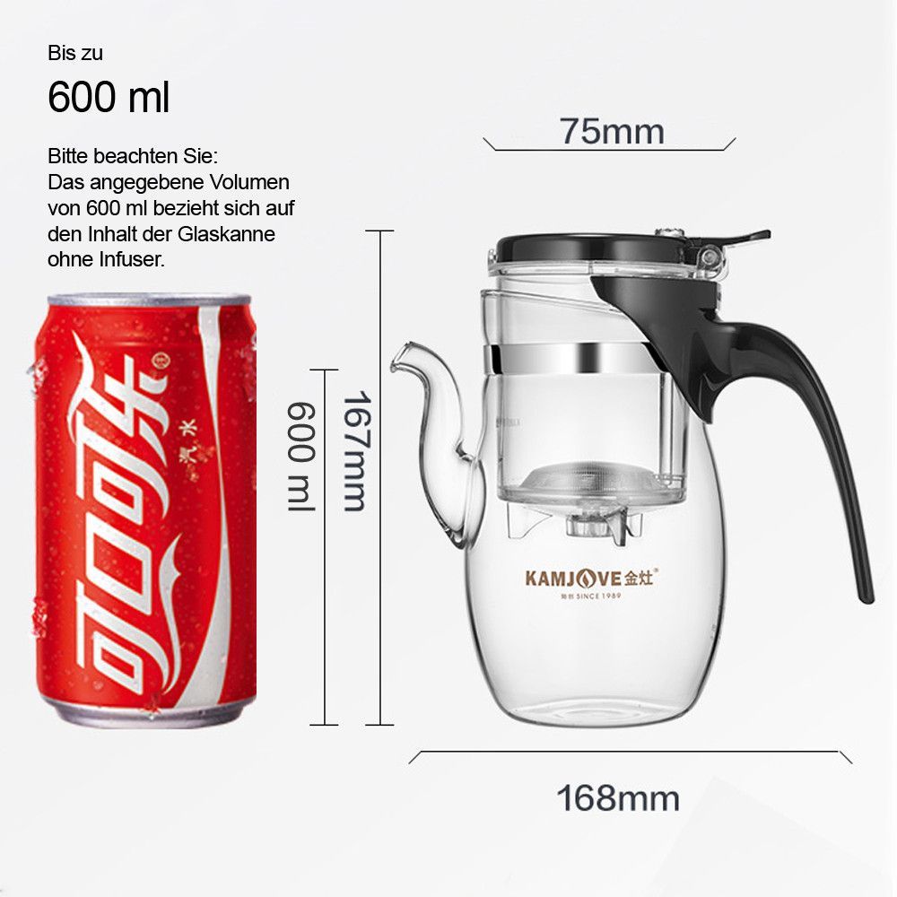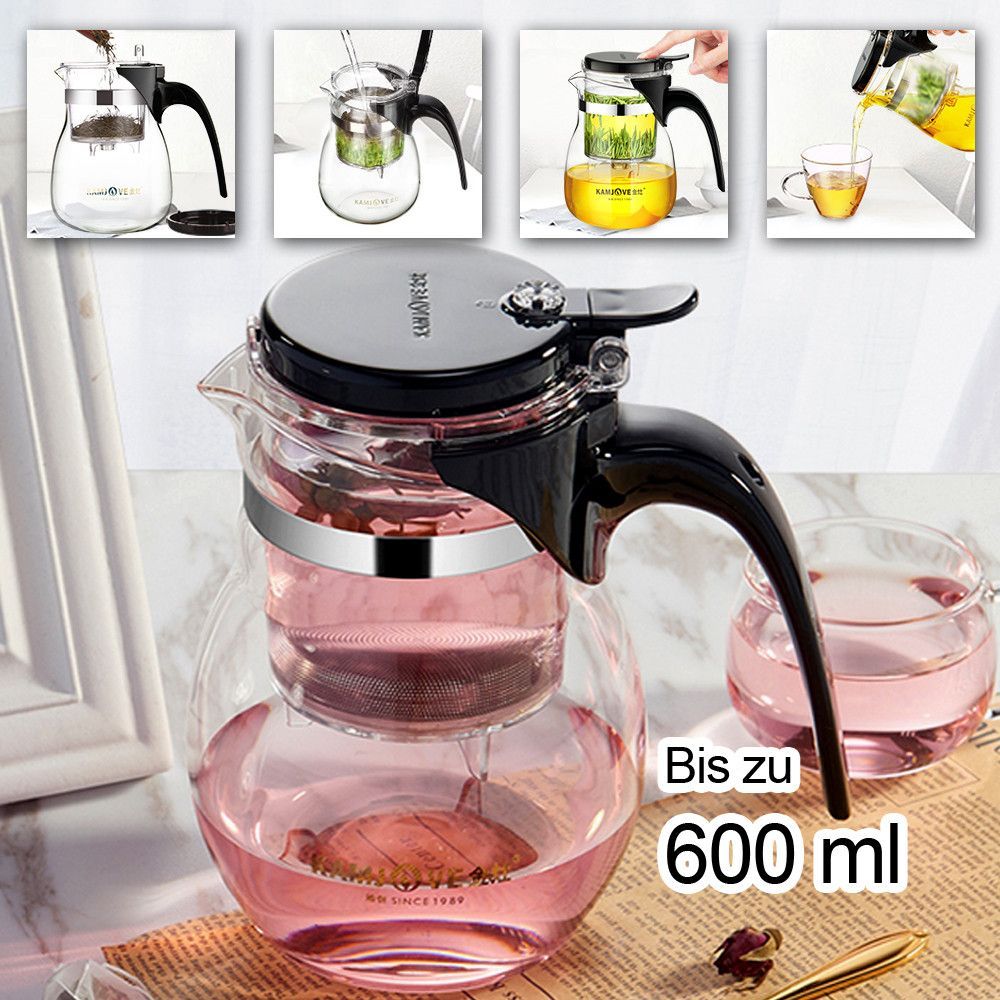 Teekanne 600ml Filtersieb All-in-one-Set mit/ohne Ausgieße herausnehmbarem Einsatz