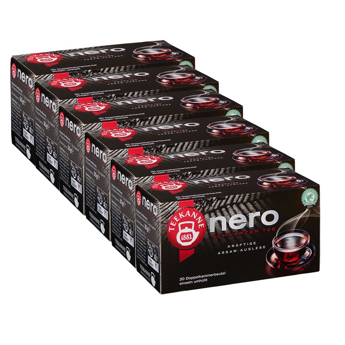 Teekanne Nero Schwarzer Tee kräftige Assam Auslese Stark 30g 6er Pack