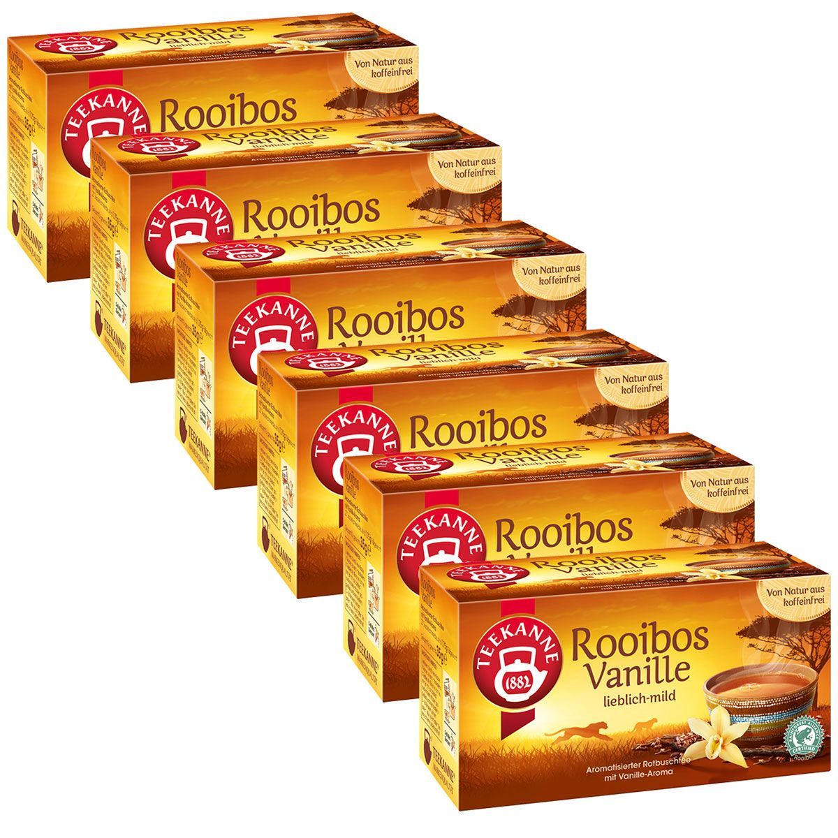 Teekanne Rooibos Vanille Tee aromatisiert mit Vanillearoma 6er Pack