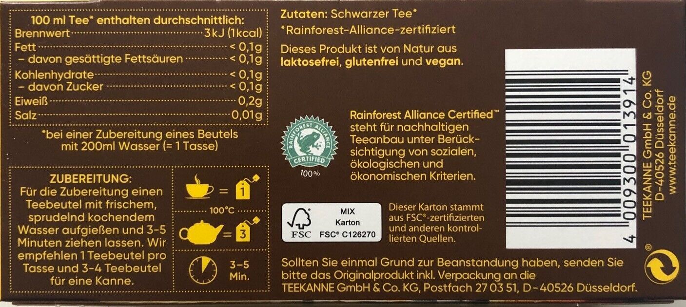 Teekanne Teekanne Tee Origins Klassik Schwarztee 20 Teebeutel 35 g, 12er Pack (12x35g)