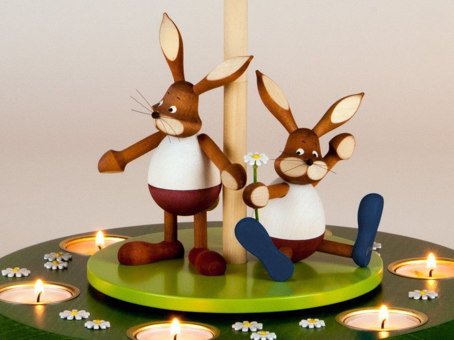 Teelicht-Pyramide Frühlingserwachen Osterhasen Osterpyramide Erzgebirge Ostern 42cm