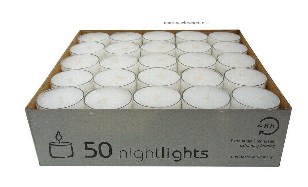 Teelichte Nightlights lange Brenndauer, 50 Stück farblos
