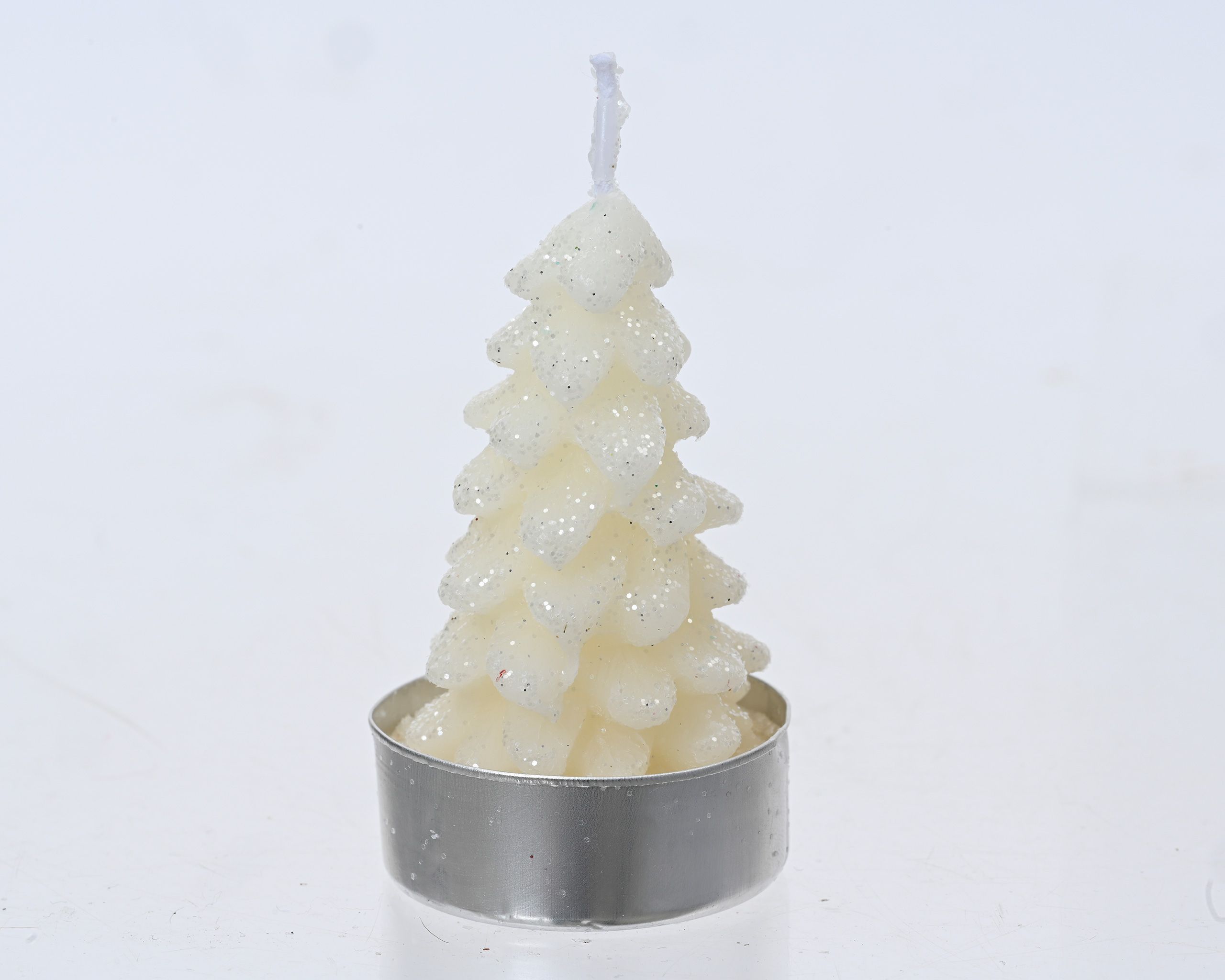 Teelichter Kerzen Paraffin 7cm Tannenbaum Form 4er Set Wollweiß