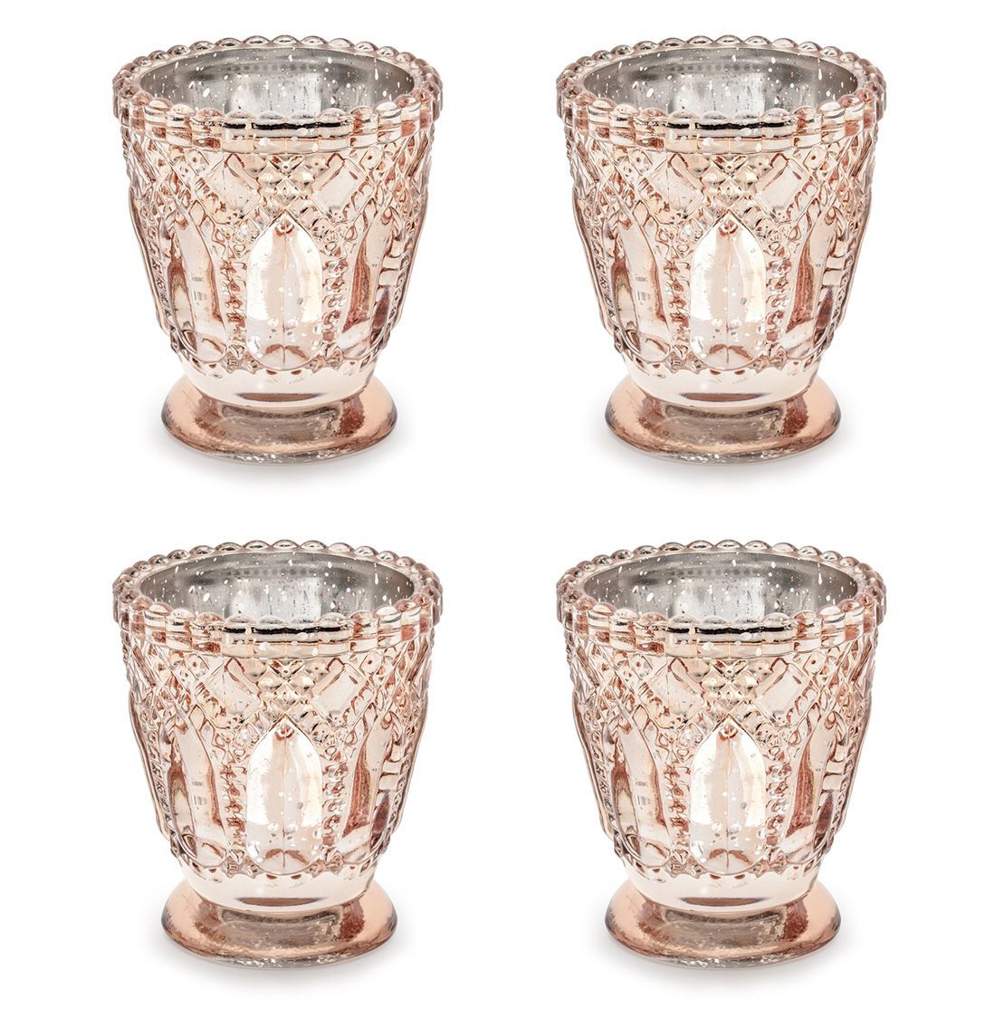 Teelichtgläser Kelch geprägte Ornamenten 7x8cm rosegold 4er Set