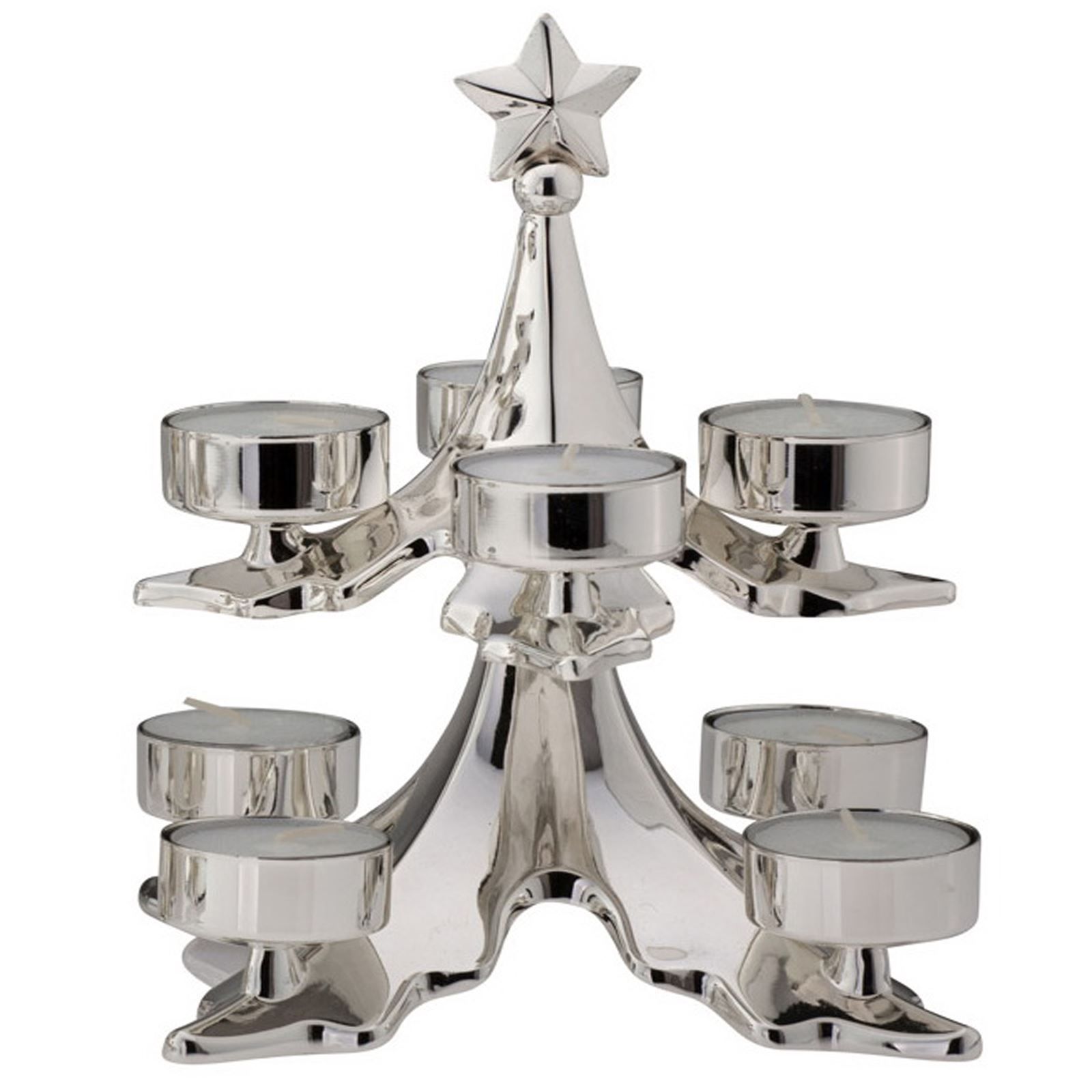 Teelichthalter 20 cm Tannenbaum 8 flg. versilbert Deko Kerzenständer Weinachten