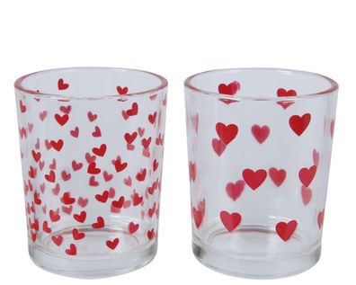 Teelichthalter Glas 6,5cm rote Herzen 1 Stück sortiert Transparent