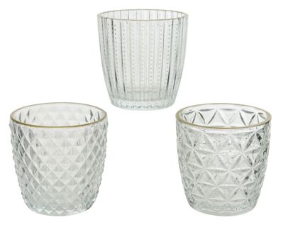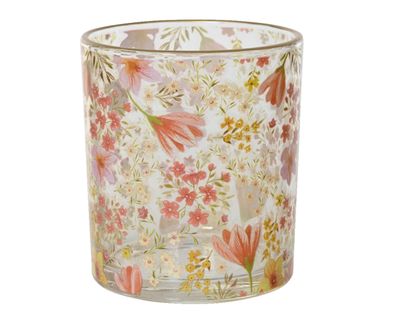 Teelichthalter Glas 9cm mit Blumenmotiv 1 Stück sortiert Transparent