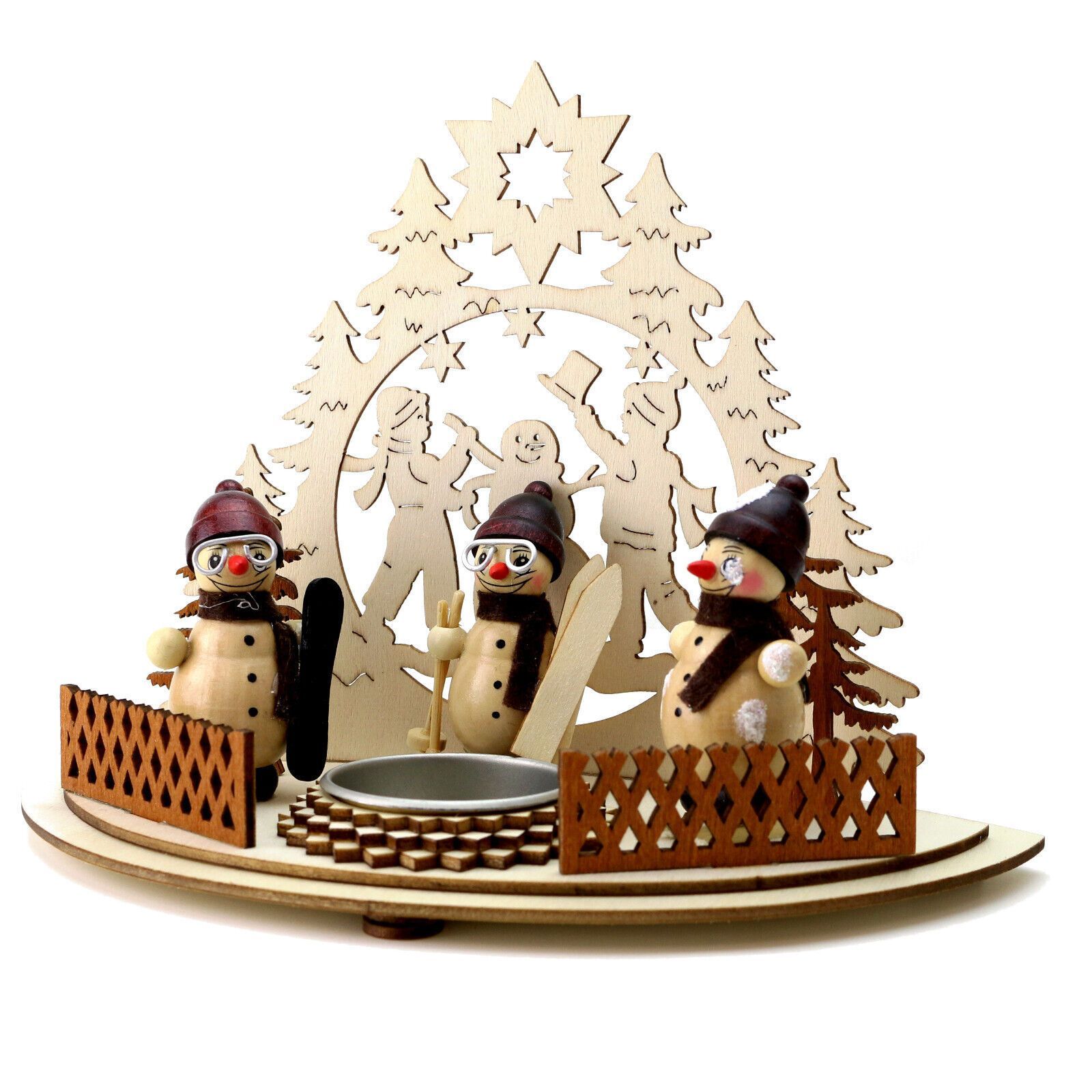 Teelichthalter aus Holz Kinder mit Schneemann Figuren Tischdeko für Teelichte