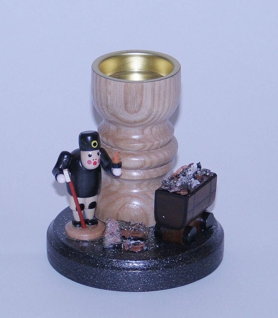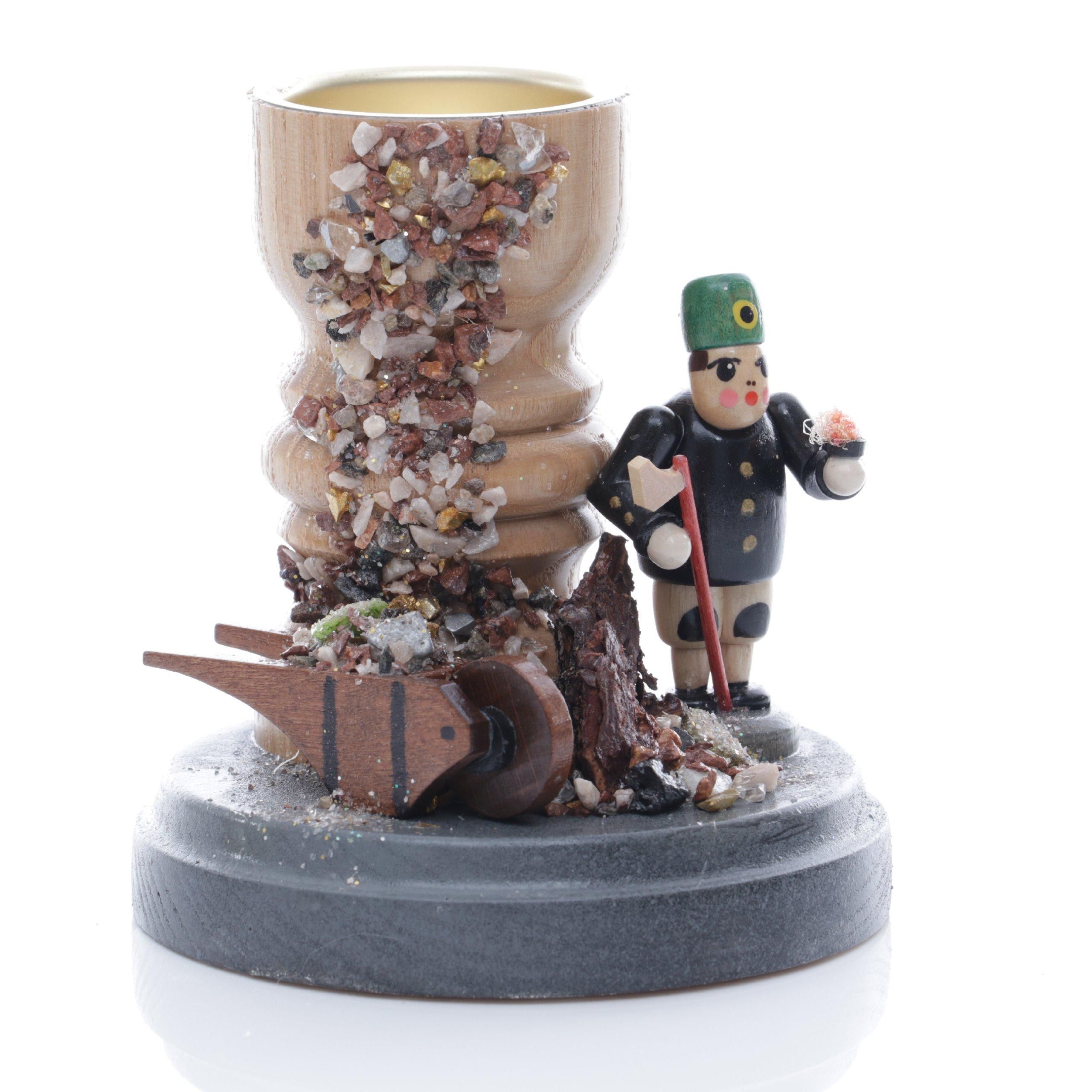 Teelichthalter Bergmann mit Karre bunt Höhe= 11cm NEU Weihnachten Kerzenschmuck