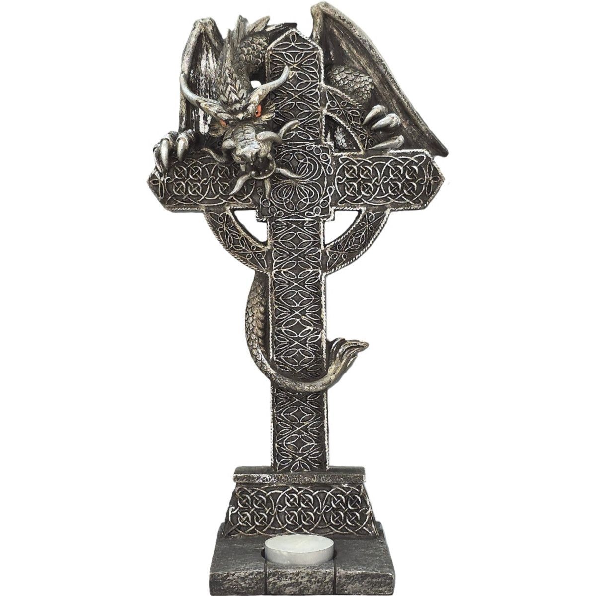 Teelichthalter Drache umschlingt keltisches Kreuz (Gr. 32cm)