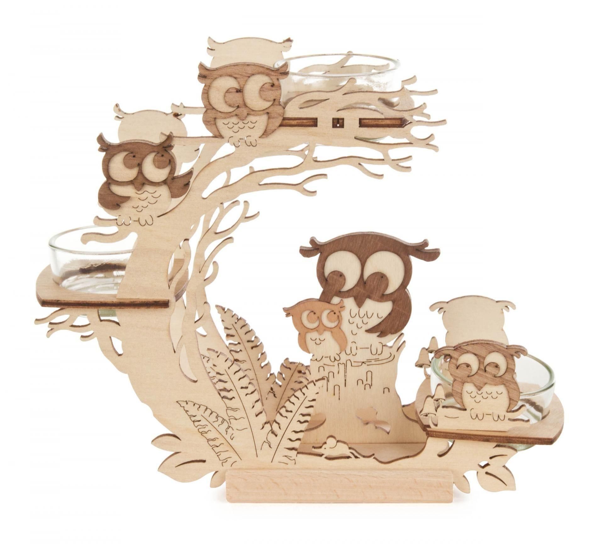 Teelichthalter Eule 17x20x5,5cm Kerzenhalter Nachtvogel Kauz Waldvogel Holzdeko