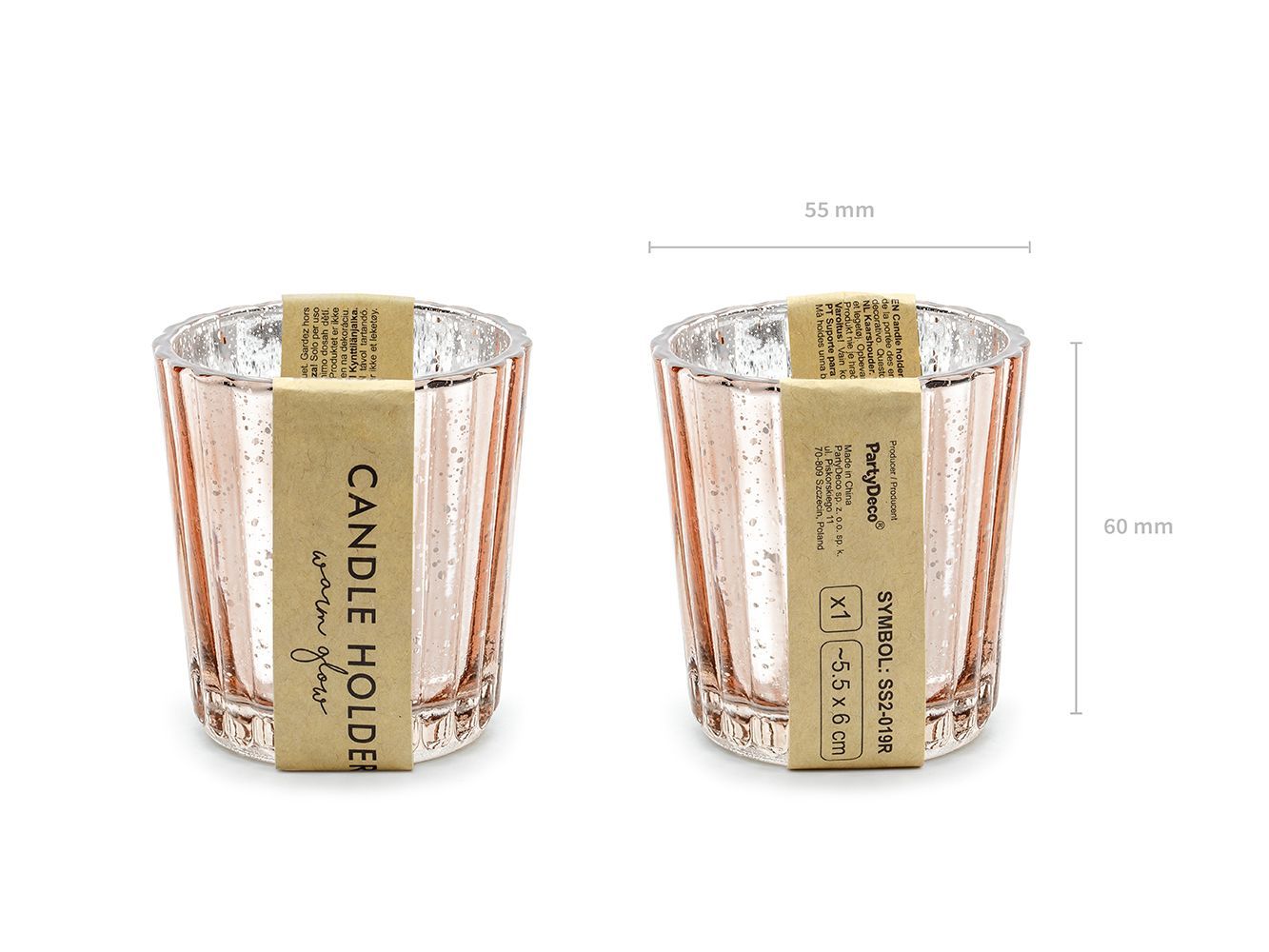 Teelichthalter Glas 5,5x6cm roségold 4er Set