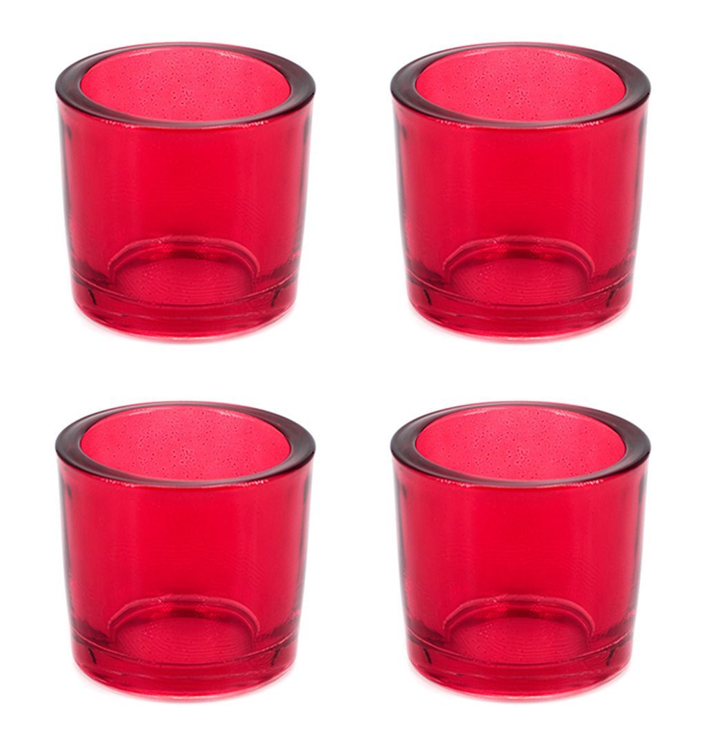 Teelichthalter Glas 6,5x6cm rot 4er Set
