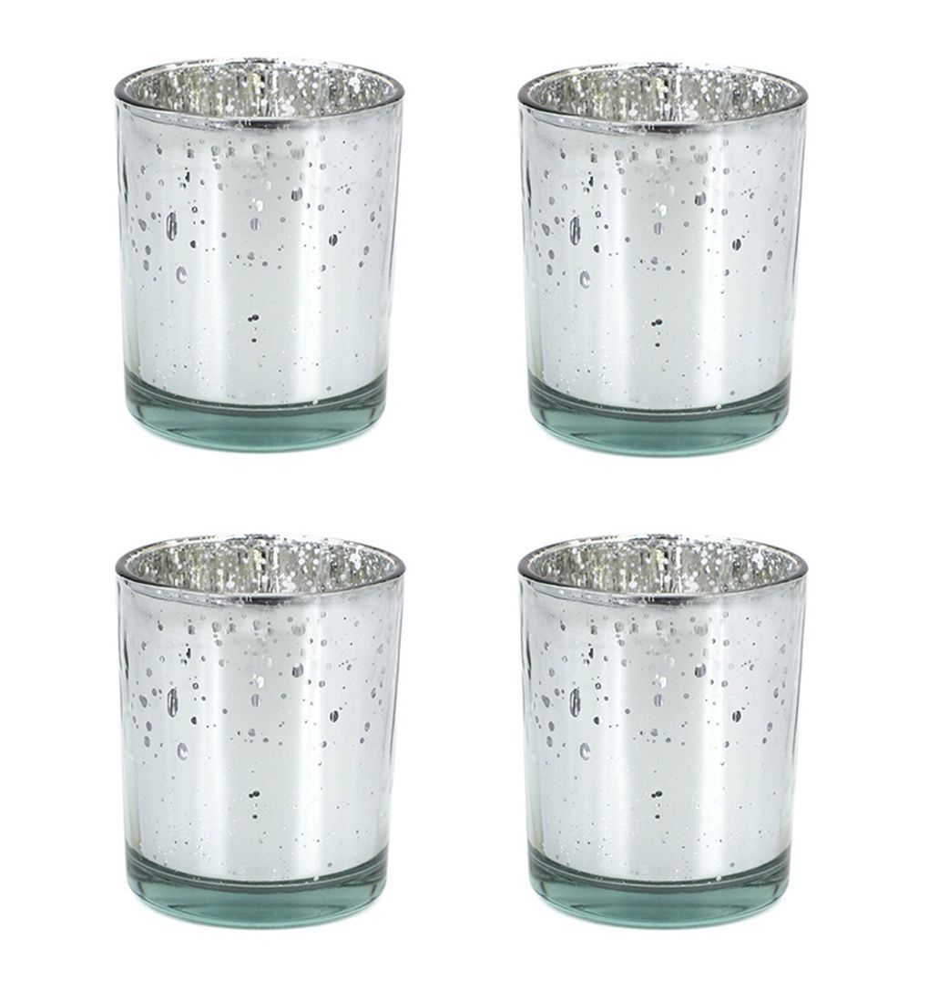 Teelichthalter Glas 6x7,2cm silber 4er Set