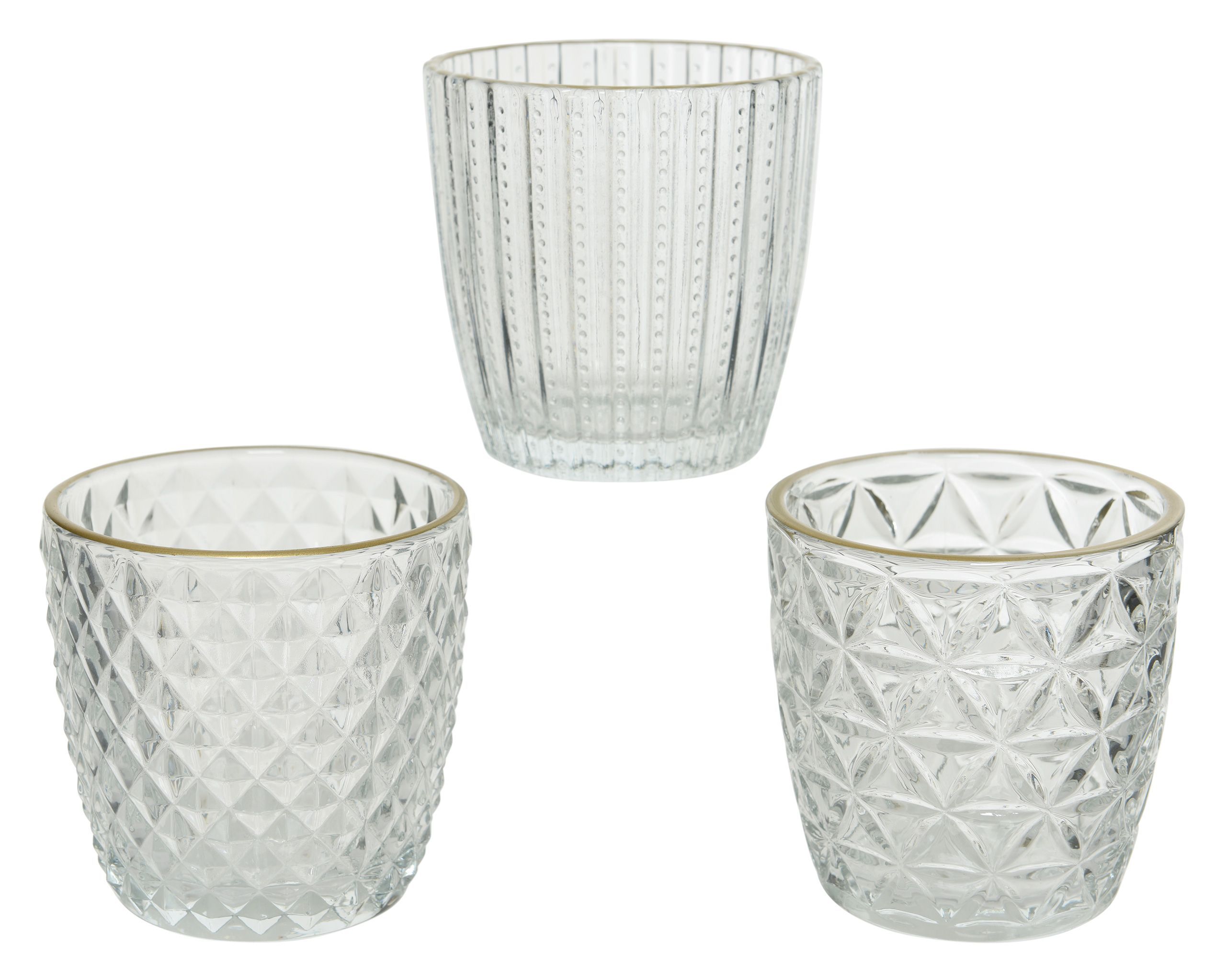 Teelichthalter Glas 7,5cm mit Relief & Goldrand 1 Stück sortiert Klar